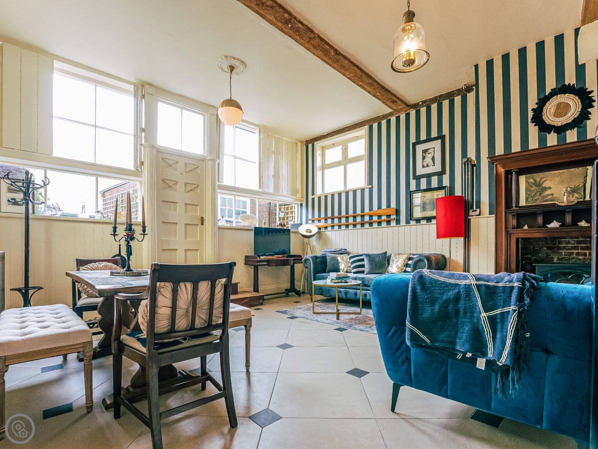 The luxurious Wellie Stern is set right in the port of Old Harwich, a fascinating coastal enclave with history pouring out of its forgotten streets, inns and houses. The Mayflower set sail here and Samuel Pepys was a constant visitor. The Wellie Stern, built in 1760, gained prominence when Nelson posted his navy to Harwich. This became the dance floor, drinking den and House of disrepute of naval life in Georgian times. The owner, who produces London Fashion Week, has lovingly restored this quaint piece of history in this sleepy port right next to authentic quiet beaches and nature reserves, to become a completely original, eclectic, luxurious, ultra-comfy 4-bedroom semi-detached property with its own private courtyard.