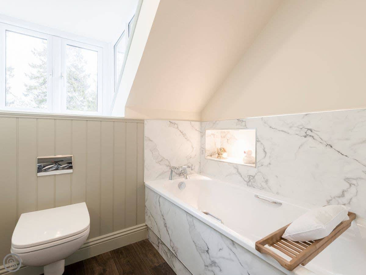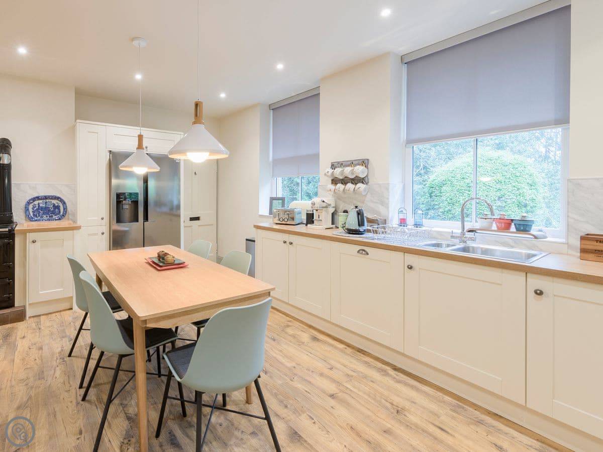 This stunning property has so many features, you’ll be bowled over from the moment you arrive. The grand entrance hall with sweeping staircase and a mixture of old and new furniture offers a pleasant welcome to all. Comfortably sleeping up to eight guests in four spacious bedrooms, this property offers great flexibility. All bedrooms are beautifully furnished with stylish interior décor, fabrics and furniture. The views from all rooms upstairs look to the gardens and woodland. There’s also a high spec contemporary bathroom with bath and shower. Downstairs is a social hub and leading off the grand entrance you’ll find a dining room with antique furniture and a spacious living room with easy seating, large windows, and a Smart TV. The kitchen/dining room is very modern and provides everything you need for cooking up a feast. Outside is perfect for relaxing in the garden or dining al-fresco, you can take a soak in the hot tub, it’s like having your own private paradise.