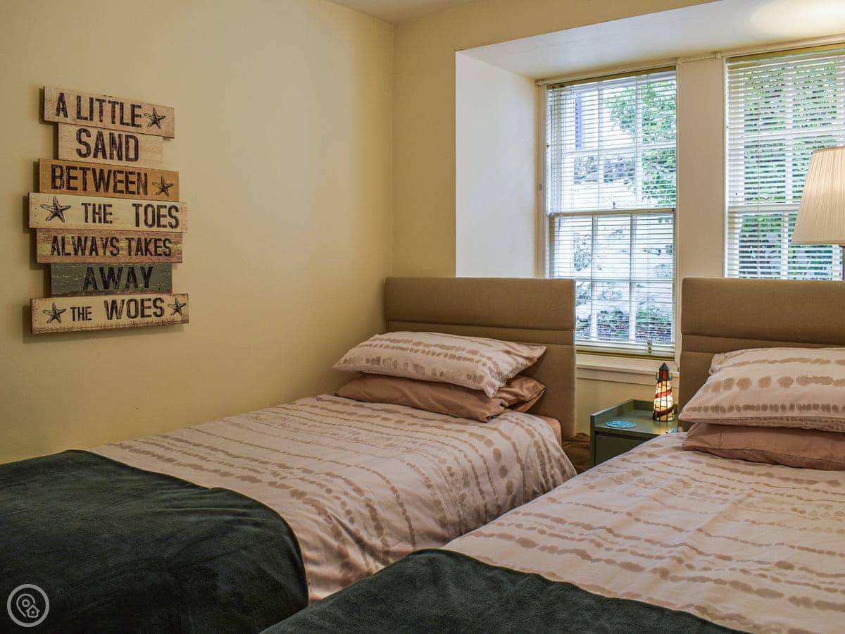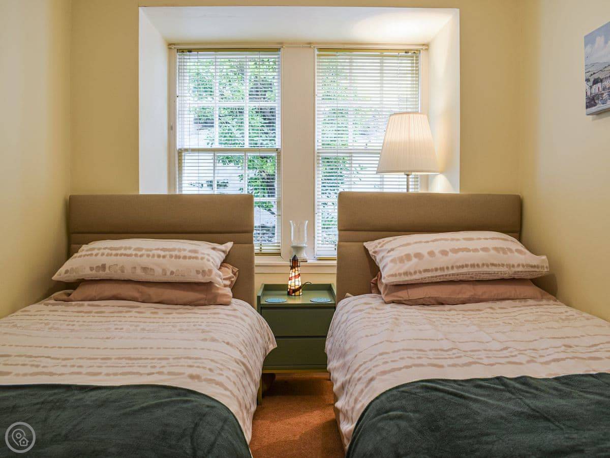 It sleeps four. There's a double room and a twin room, and one bathroom. It's got a 4 Star rating, so it's comfortable. You can bring one dog.
