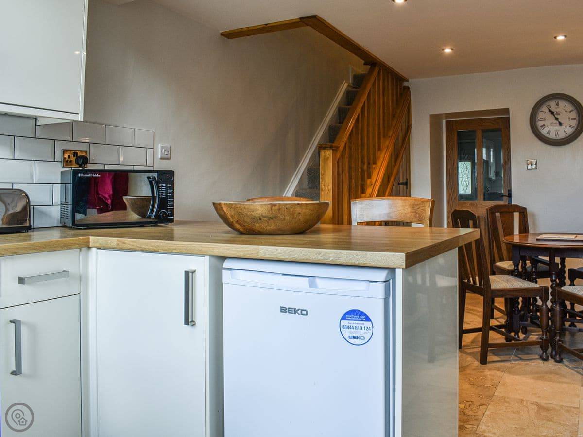 Kay’s Cottage is tucked away down a long-gravelled driveway, with an outdoor area where you can soak up the sunshine at the start of each day with your morning brew. Built over 150 years ago, this quaint cottage still retains some beautiful original features and has been tastefully furnished throughout. Stepping inside you are welcomed into the wonderful kitchen with a dining area beside the feature fireplace. Through from the dining area you have the separate cosy lounge, complete with an electric stove making this room extra snug and warm. After a busy day exploring you can unwind on the sofa in front of the TV, beneath the beamed ceiling. Upstairs there are two bedrooms, the master bedroom has a double bed, and the smaller room has twin beds. The shower room is modern and inviting, where you can start each day refreshed. Here you have two designated parking bays, plus storage for bikes and other outdoor equipment.