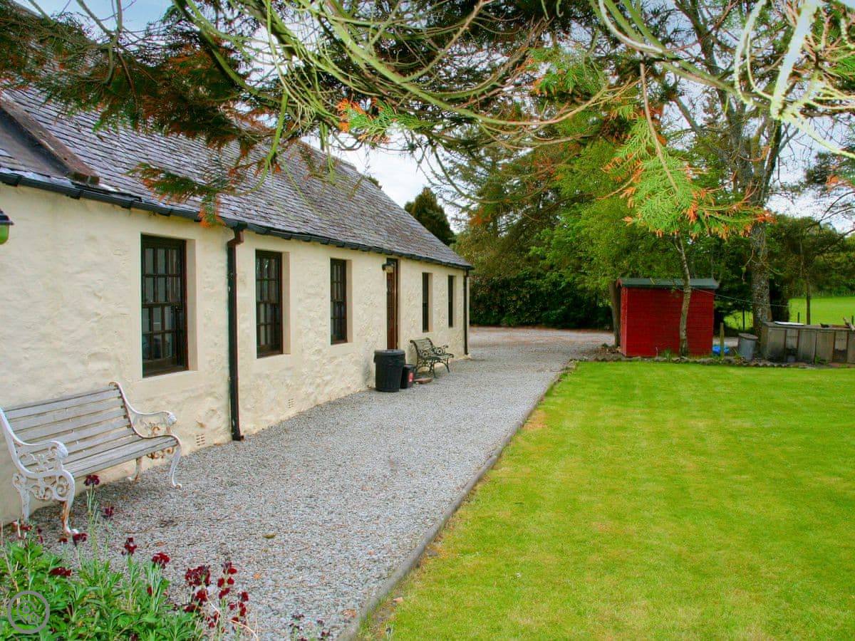 The Smithy is in Spittal, Dumfriesshire. It's a semi-detached cottage, right by the River Bladnoch. The view is quiet, just fields and the river. You can see it from the garden.