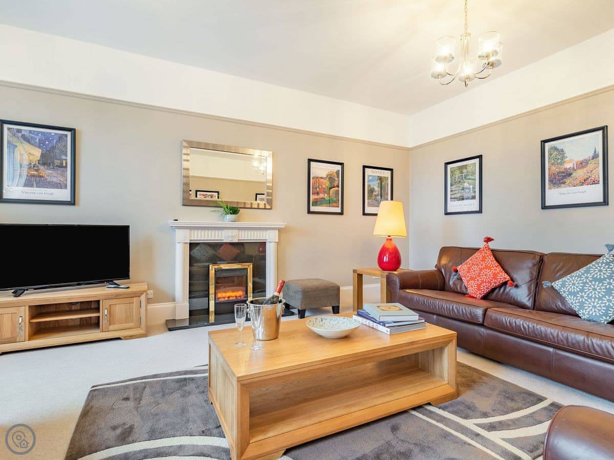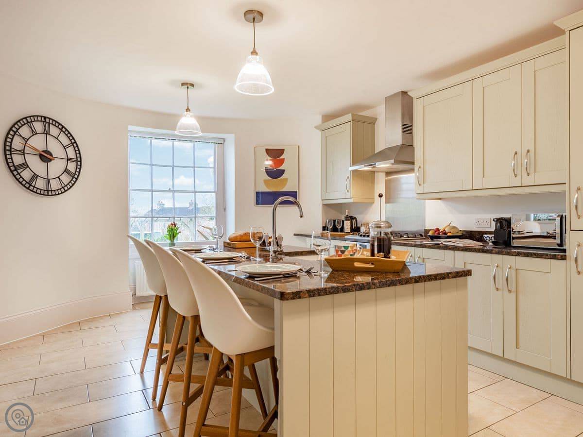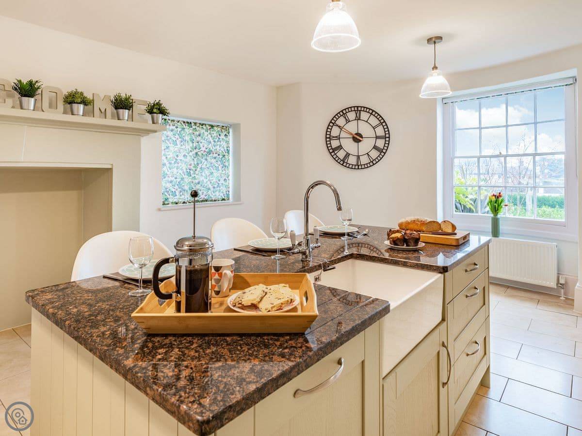 The kitchen is big, with an island and a table. It has a dishwasher and a double oven. The living room is very large with an electric fire and a Smart TV. We provide dog beds and bowls if you need them. The place is good for two dogs.