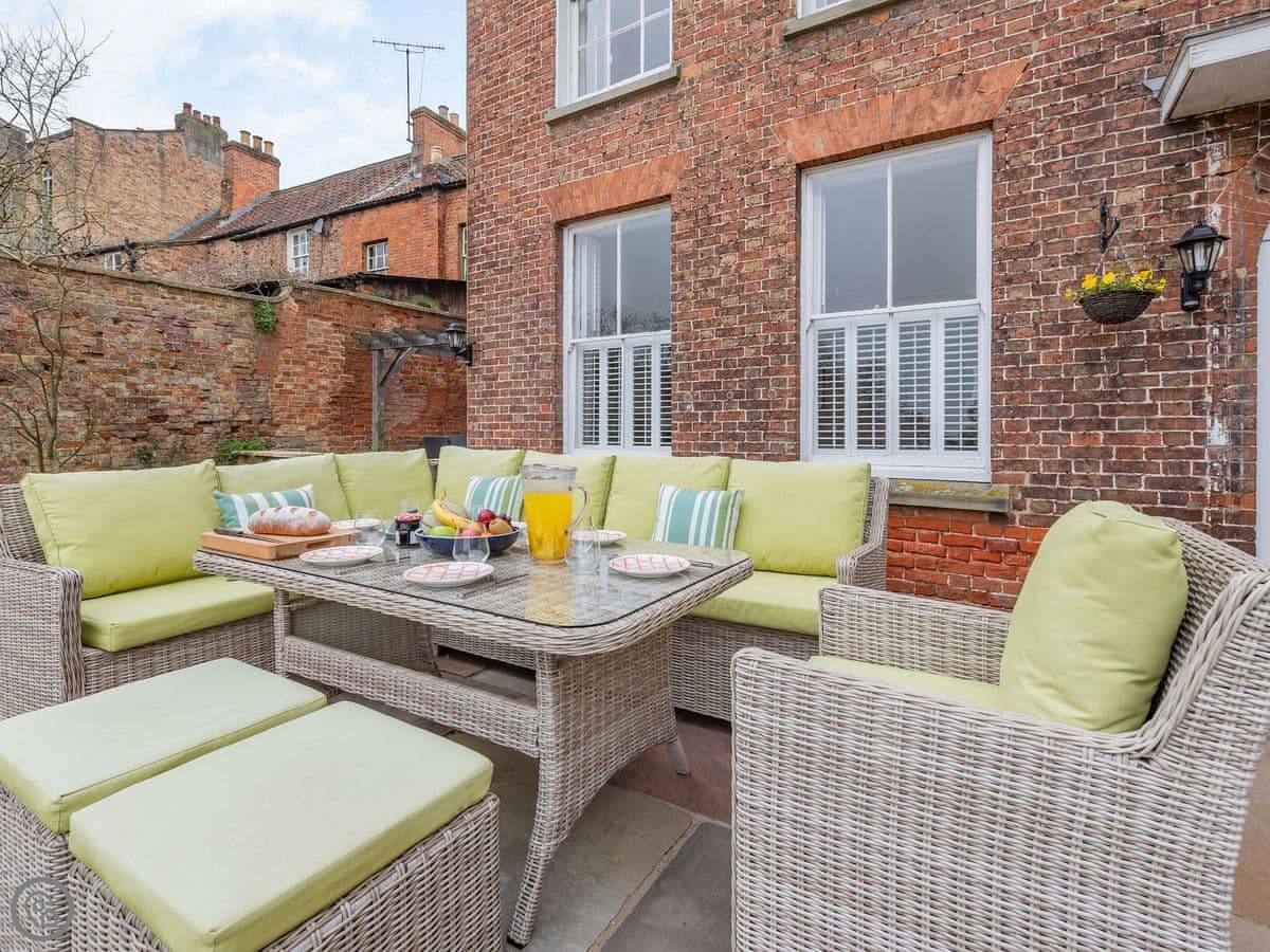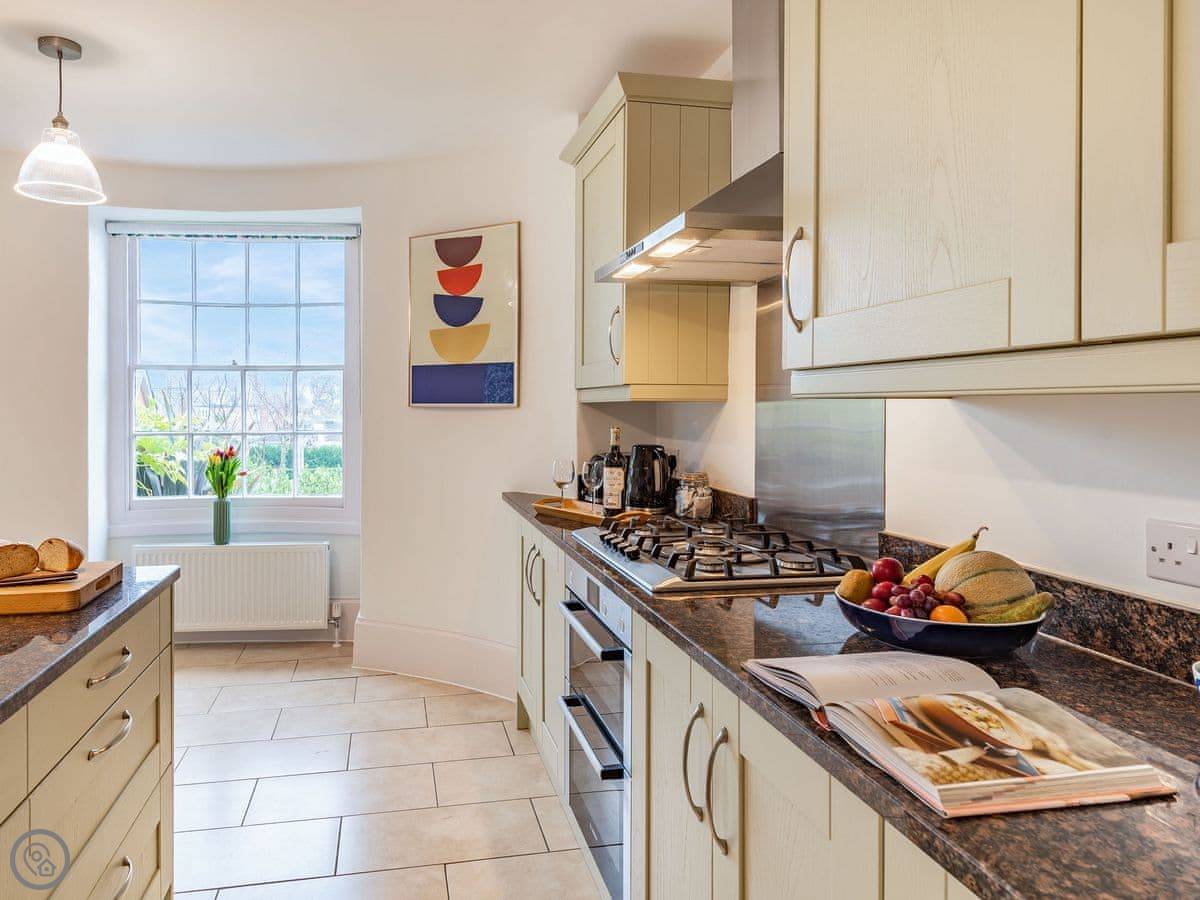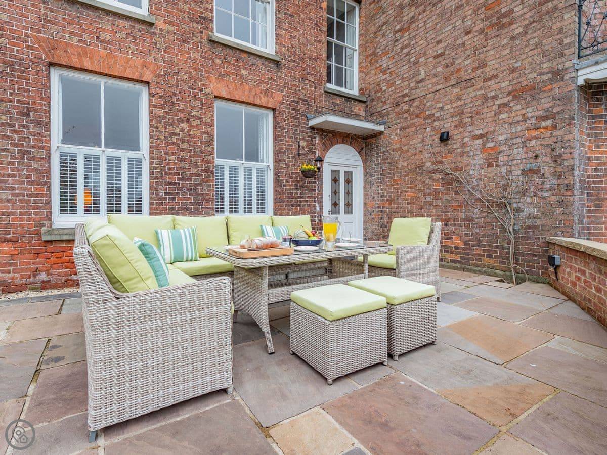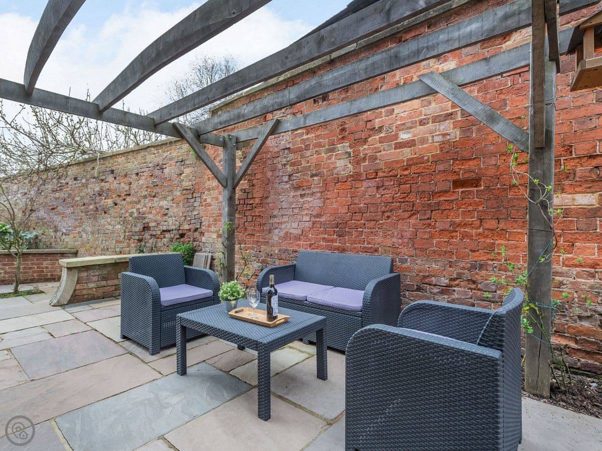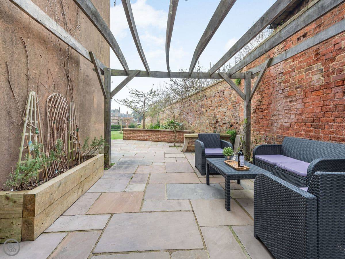 Bank House Apartment is on the high street in Newnham, right by the clock tower. It's a ground floor flat, all on one level. You can walk out the back onto your own patio, and from there you can get into our big, fenced-off garden. The garden is safe for dogs.