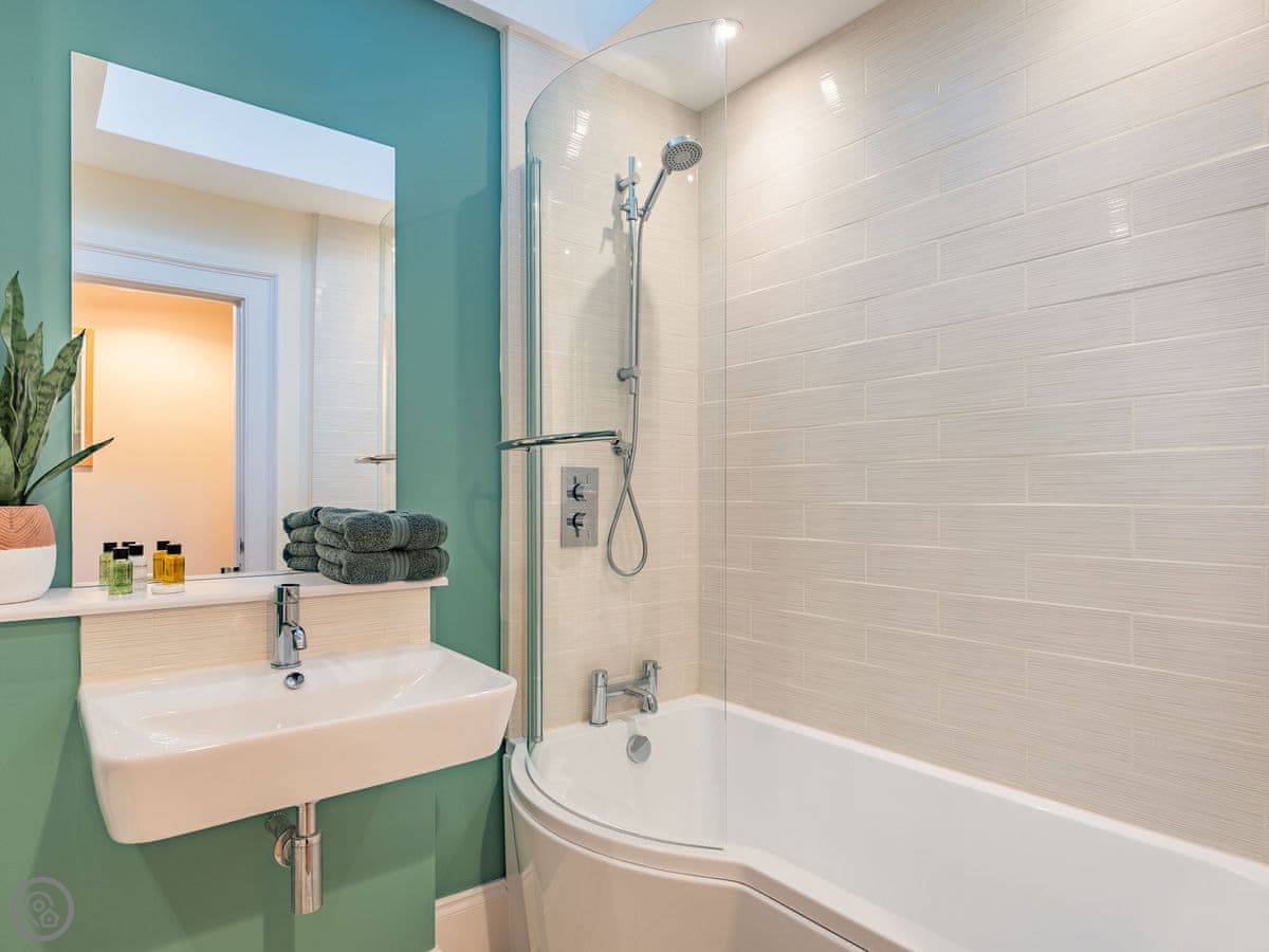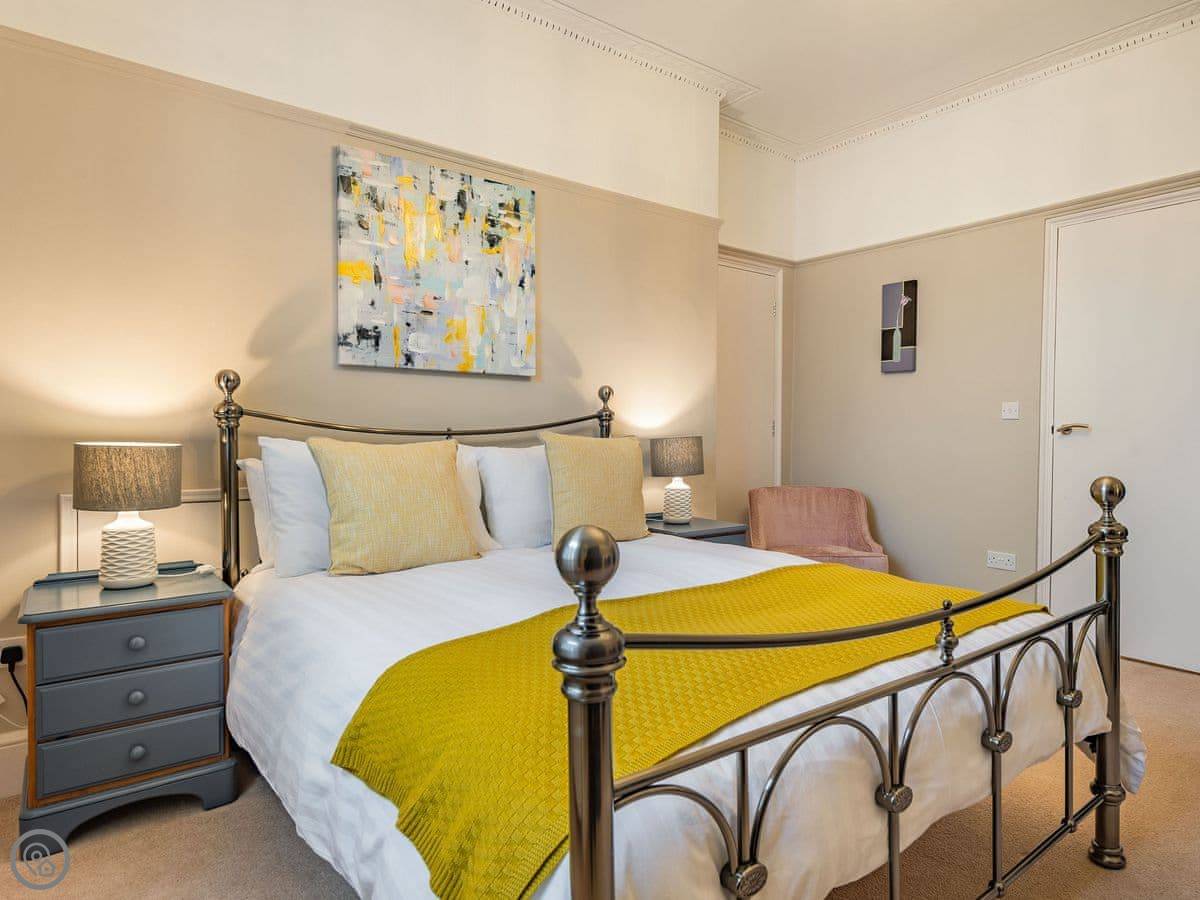 It sleeps two, or three if one is a child. There's a king-size bed and a spare z-bed that rolls away. One bathroom with a bath and a shower over it. It's 5 star, which means it's been done up well and everything's in good order.