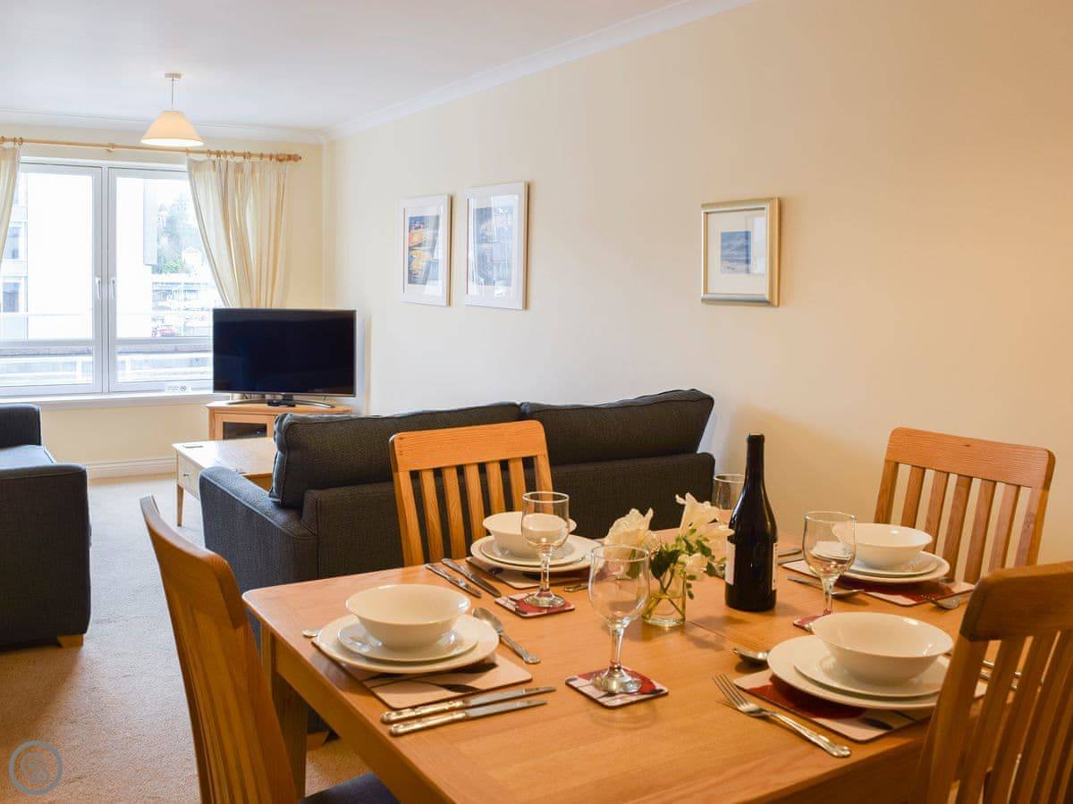 Spacious, bright and tastefully decorated, this 2-bedroom apartment is located in a smart modern development a minute’s walk from the town centre and ferries. With private parking and lift access, this welcoming 1st floor apartment enjoys a convenient location- simply step out the door to enjoy spectacular views of Oban Bay and McCaig’s Tower as you stroll along Oban’s promenade. Perfect for the perfect coastal town break, you can enjoy the hustle and bustle of town life, whilst blissfully separate in your own peaceful apartment.