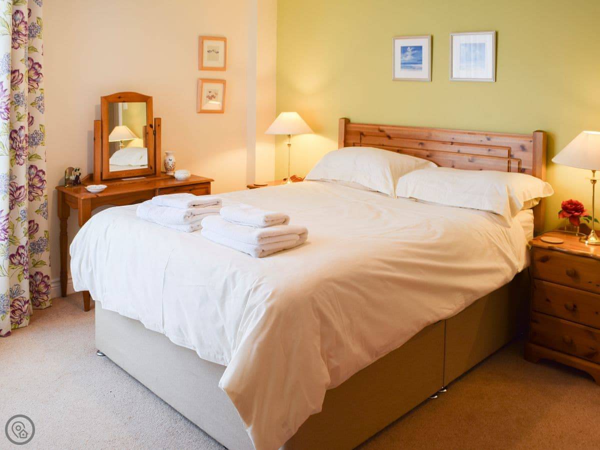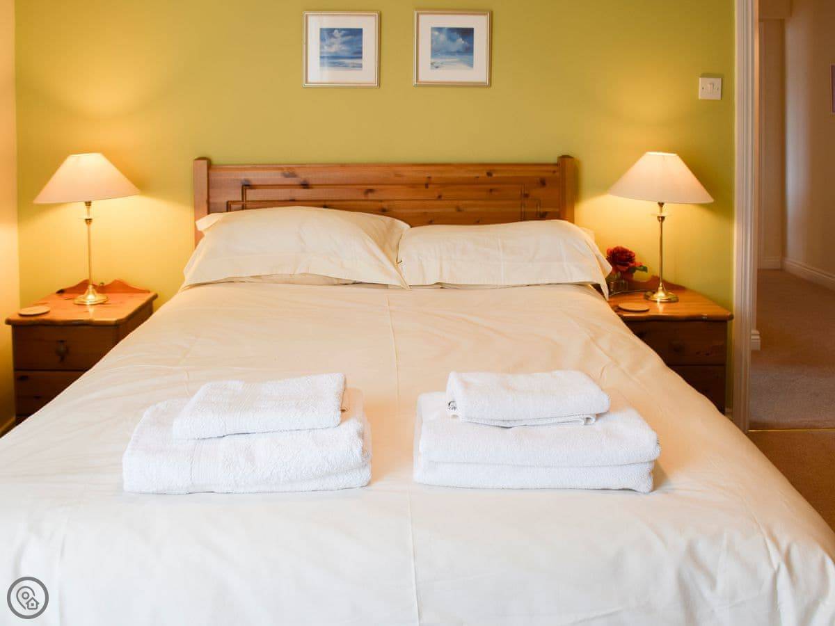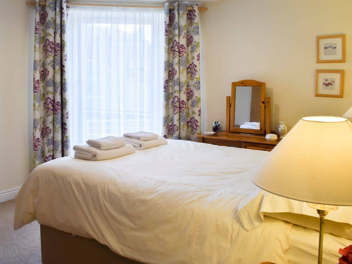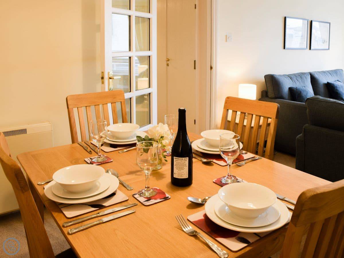 A beautifully decorated airy apartment, it’s the ideal size for a couple or small family wishing to enjoy a coastal town centre break and is made cosy by convenient electric heating. It has a spacious living/dining room, enjoying a view over the town up to Pulpit Hill and a modern well-equipped kitchen with breakfast bar. There are two spacious bedrooms with lovely comfy beds, a double room and a twin room. Both are served by a newly installed shower room with walk-in shower.
