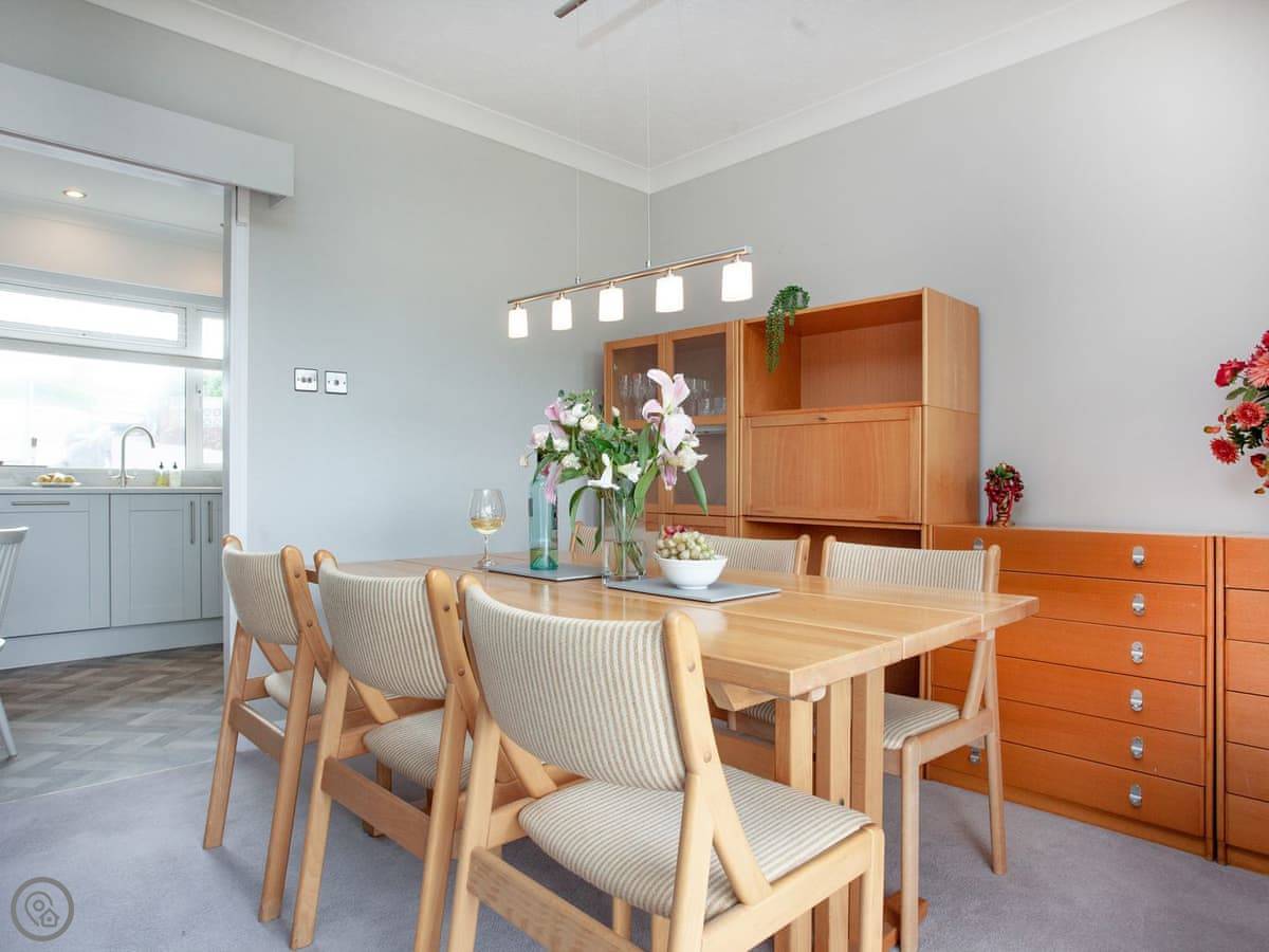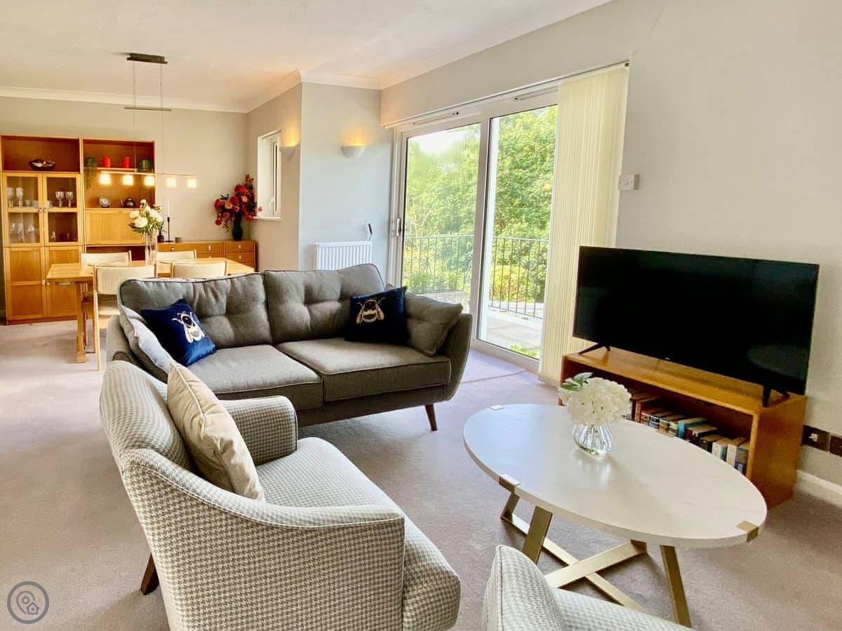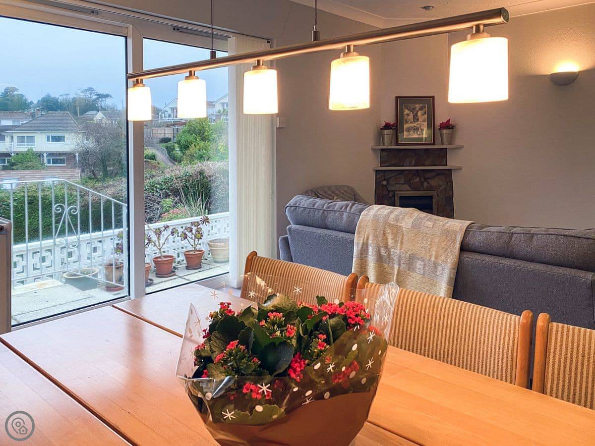 Leighwood Cottage is a modern and quaint property, overlooking Occombe Woods. Through the entrance hallway, the bright, airy, and well-equipped kitchen is on your left. There is a very handy utility room opposite, where you will find a washer/ dryer and toilet facilities. The living/ dining room is next to the kitchen, sliding glass doors bring the outside in, leading you out and down the steps onto the rear patio area.