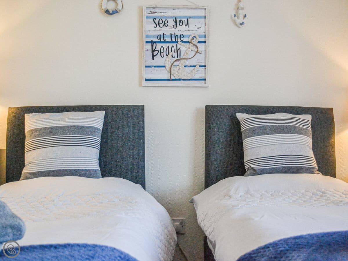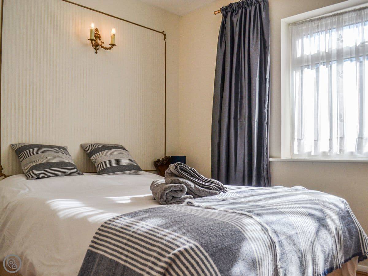 It sleeps five people. Two bedrooms and one shower room, all on the same level, so no stairs at all. It's got a 4 Star rating, which means it's comfortable and well-equipped. The garden is enclosed, which is good if you've got dogs. You can bring up to two. There's parking on the driveway.