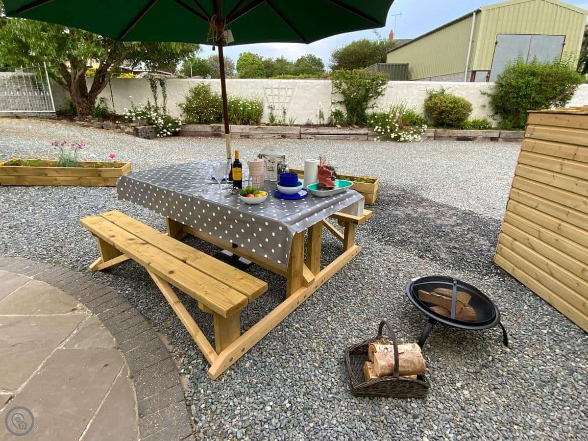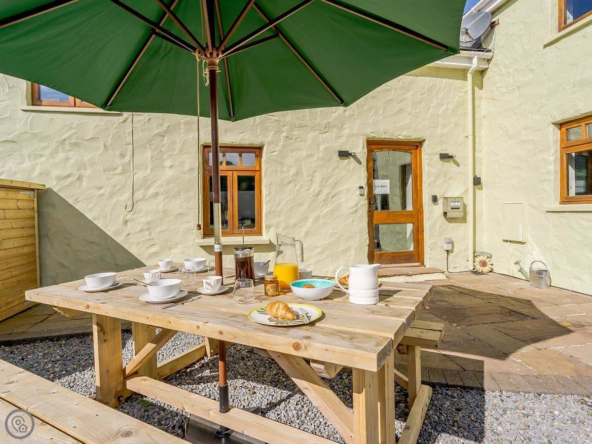 The Barn is in Honeyborough, a little place just outside Neyland in Pembrokeshire. It's semi-detached, next to another cottage called The Coach House. You get your own outside space with a table and benches.