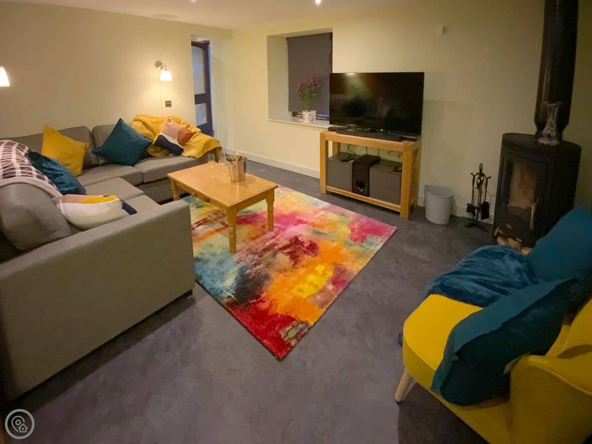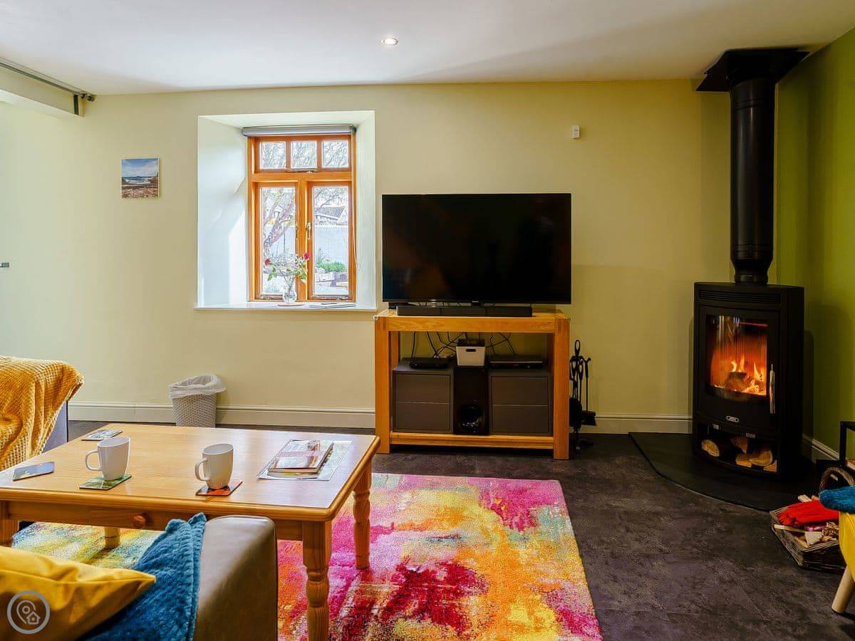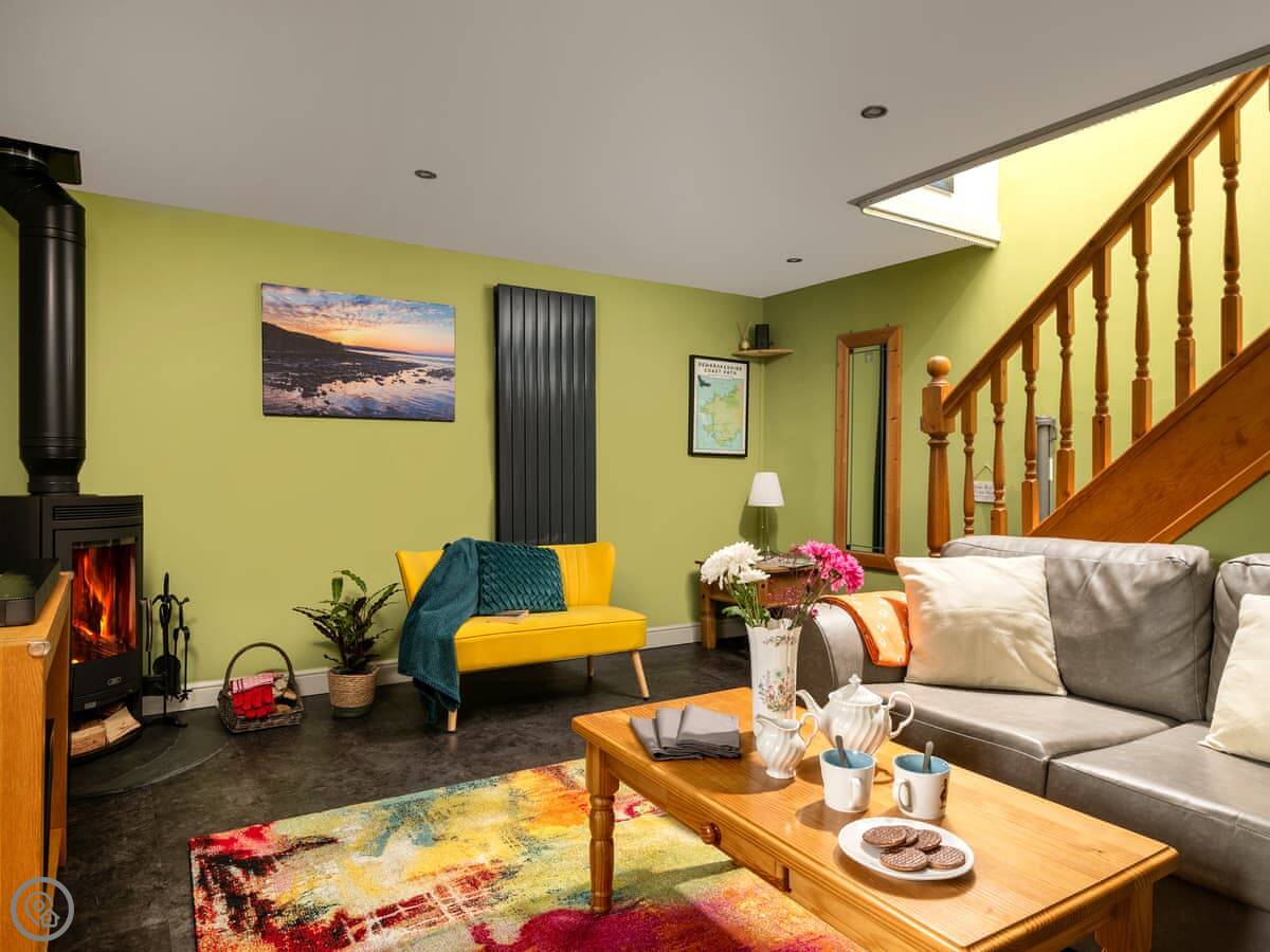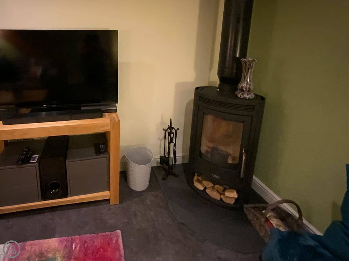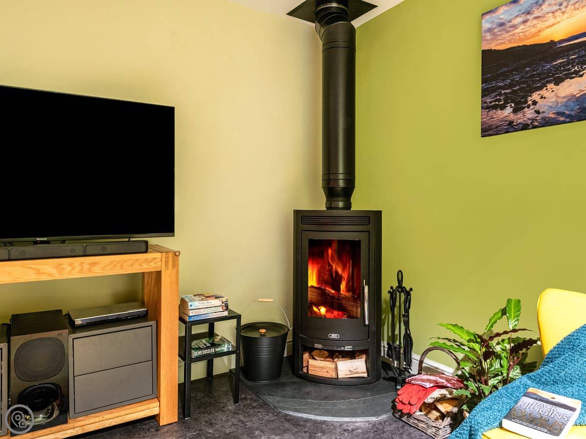 Inside, there's a wood burner for cooler evenings and a large 4K TV with Sky and Netflix. The kitchen has a dishwasher and washing machine. Parking is on site.