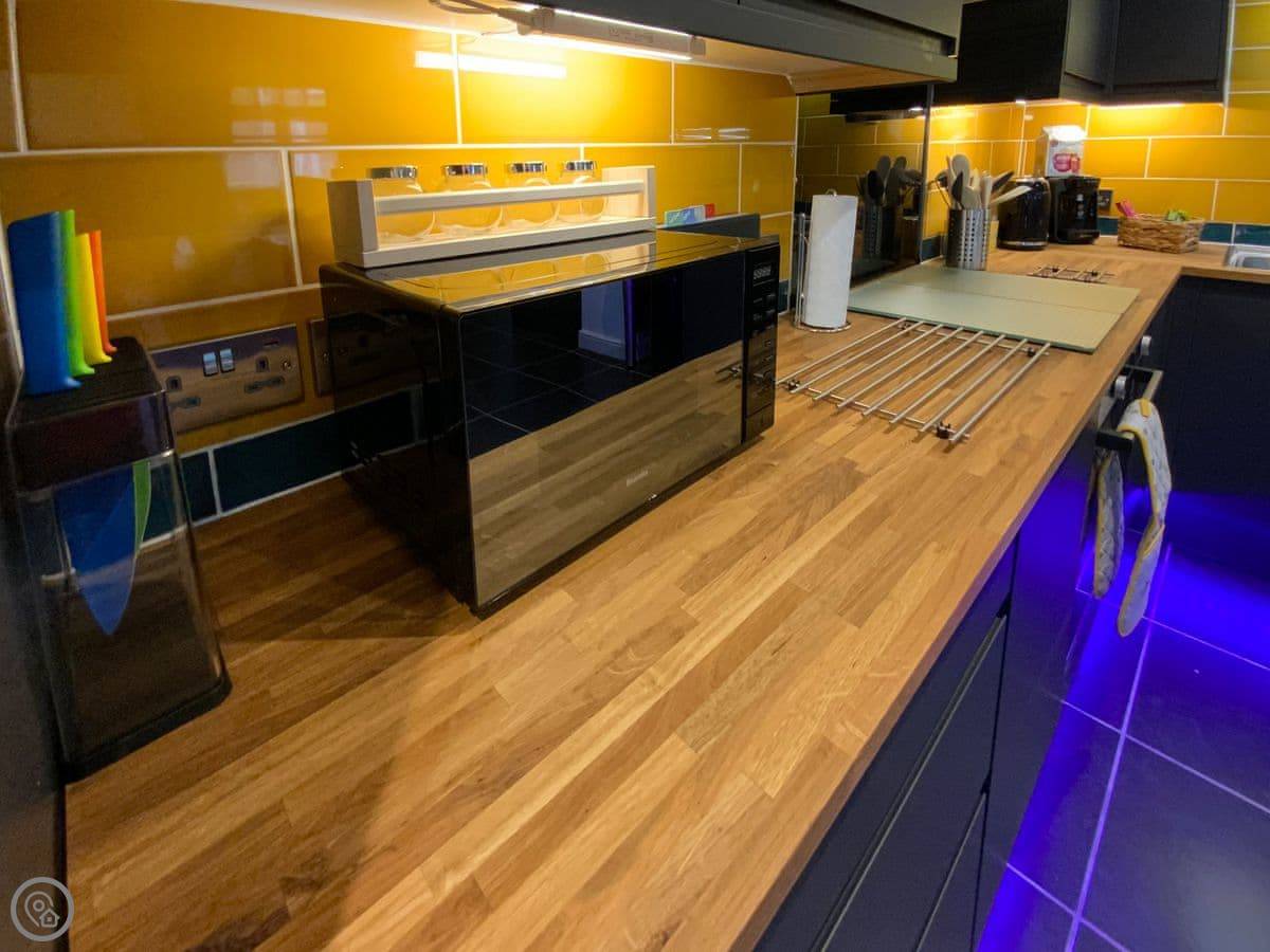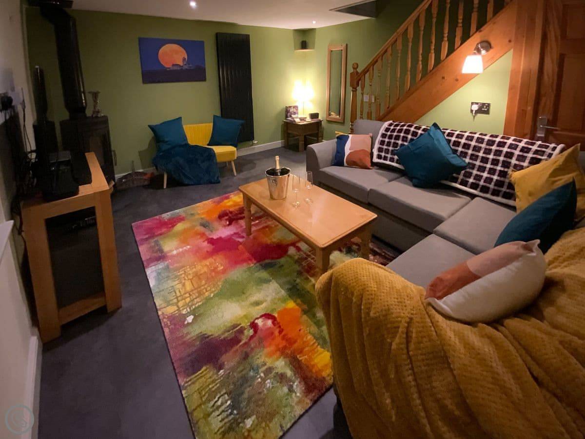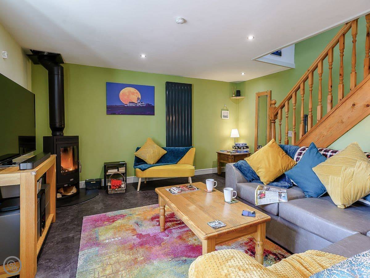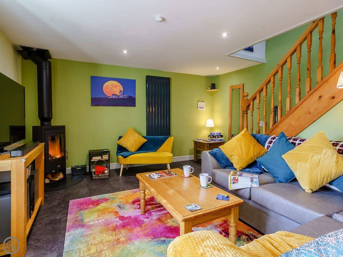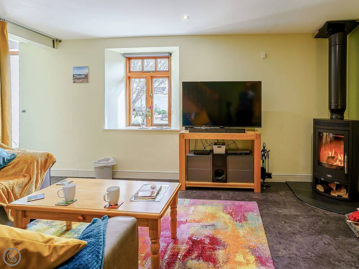 Inside, there's a wood burner for cooler evenings and a large 4K TV with Sky and Netflix. The kitchen has a dishwasher and washing machine. Parking is on site.