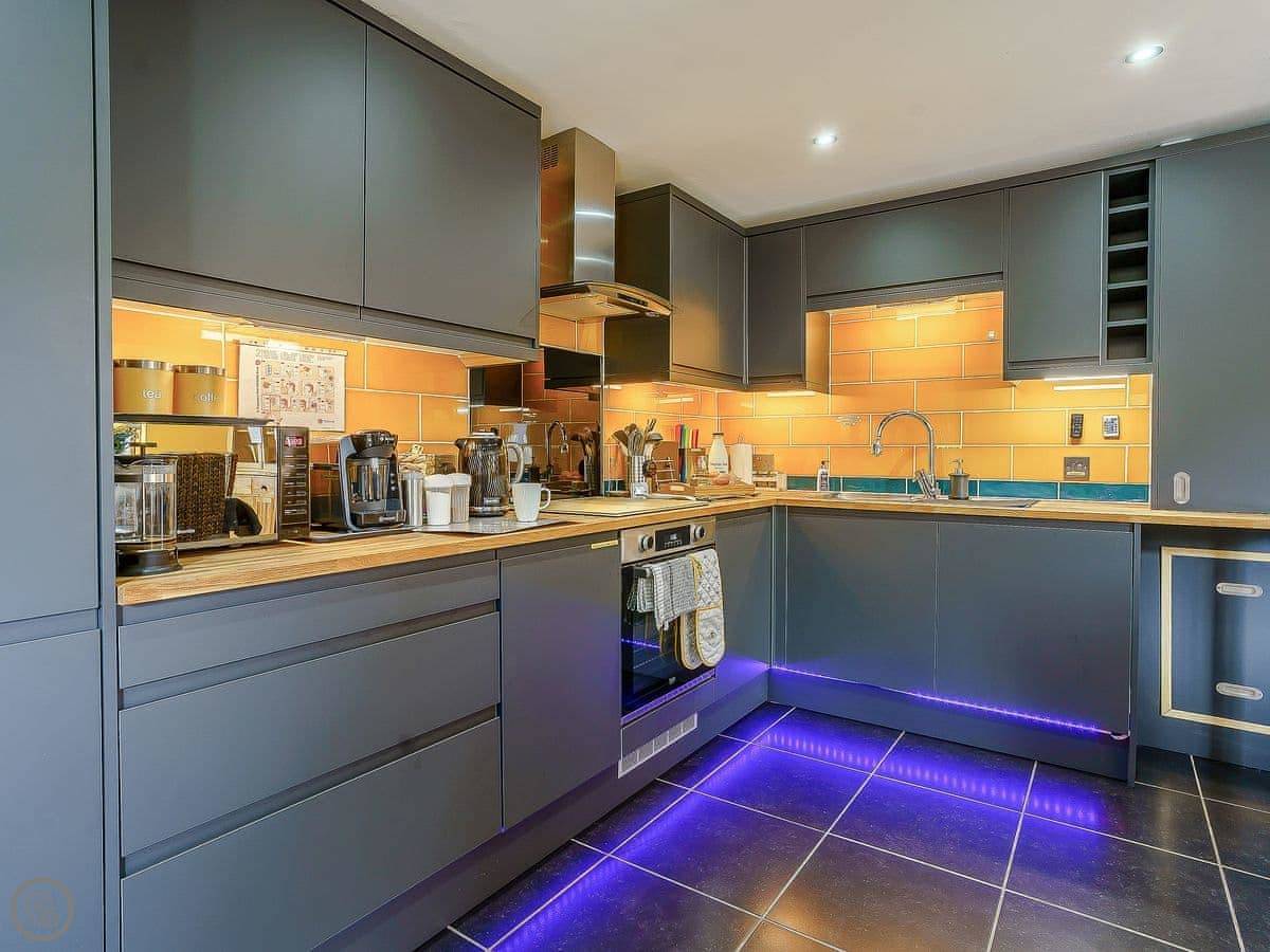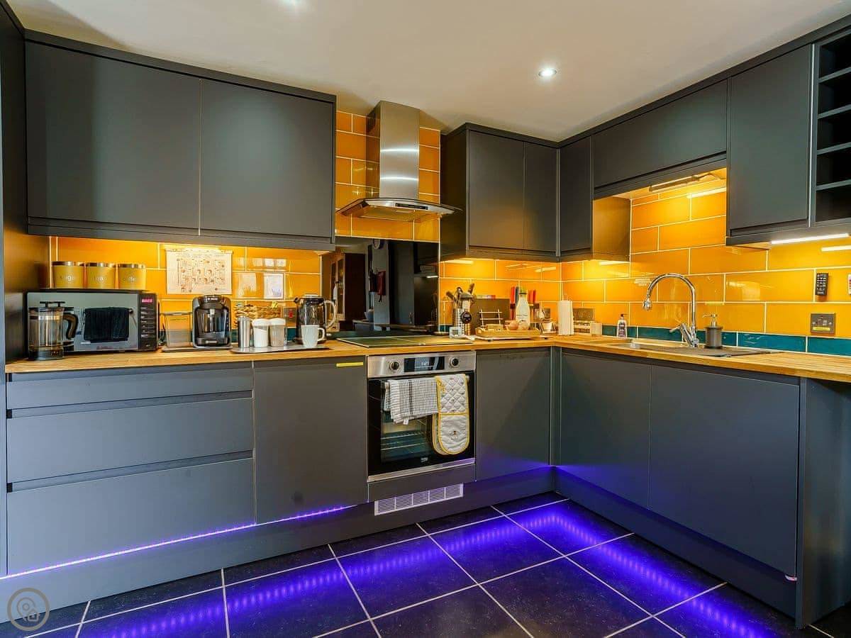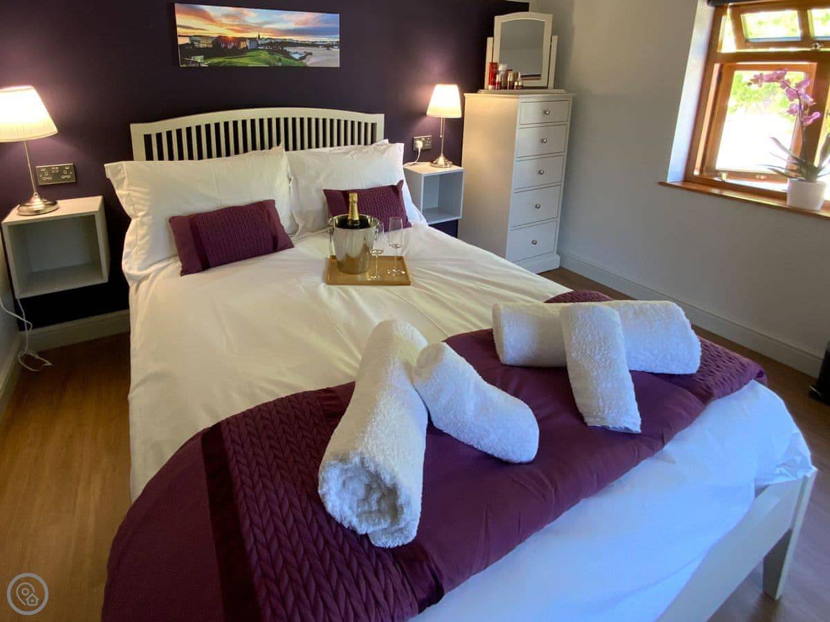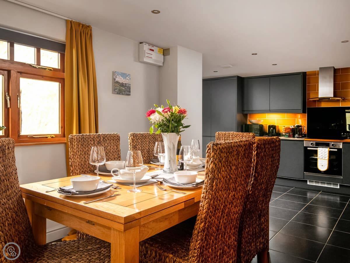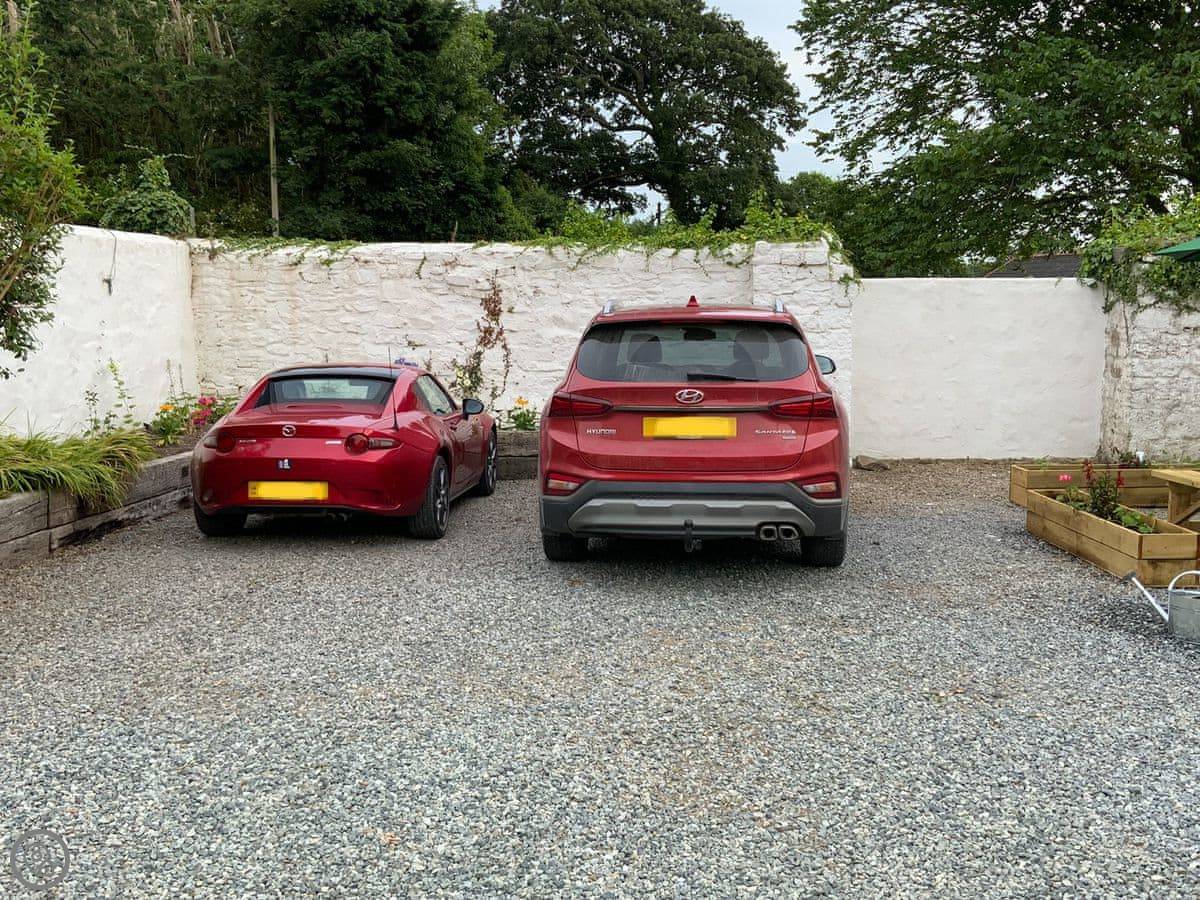 Inside, there's a wood burner for cooler evenings and a large 4K TV with Sky and Netflix. The kitchen has a dishwasher and washing machine. Parking is on site.