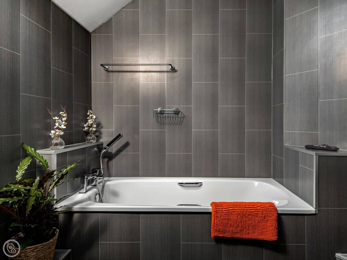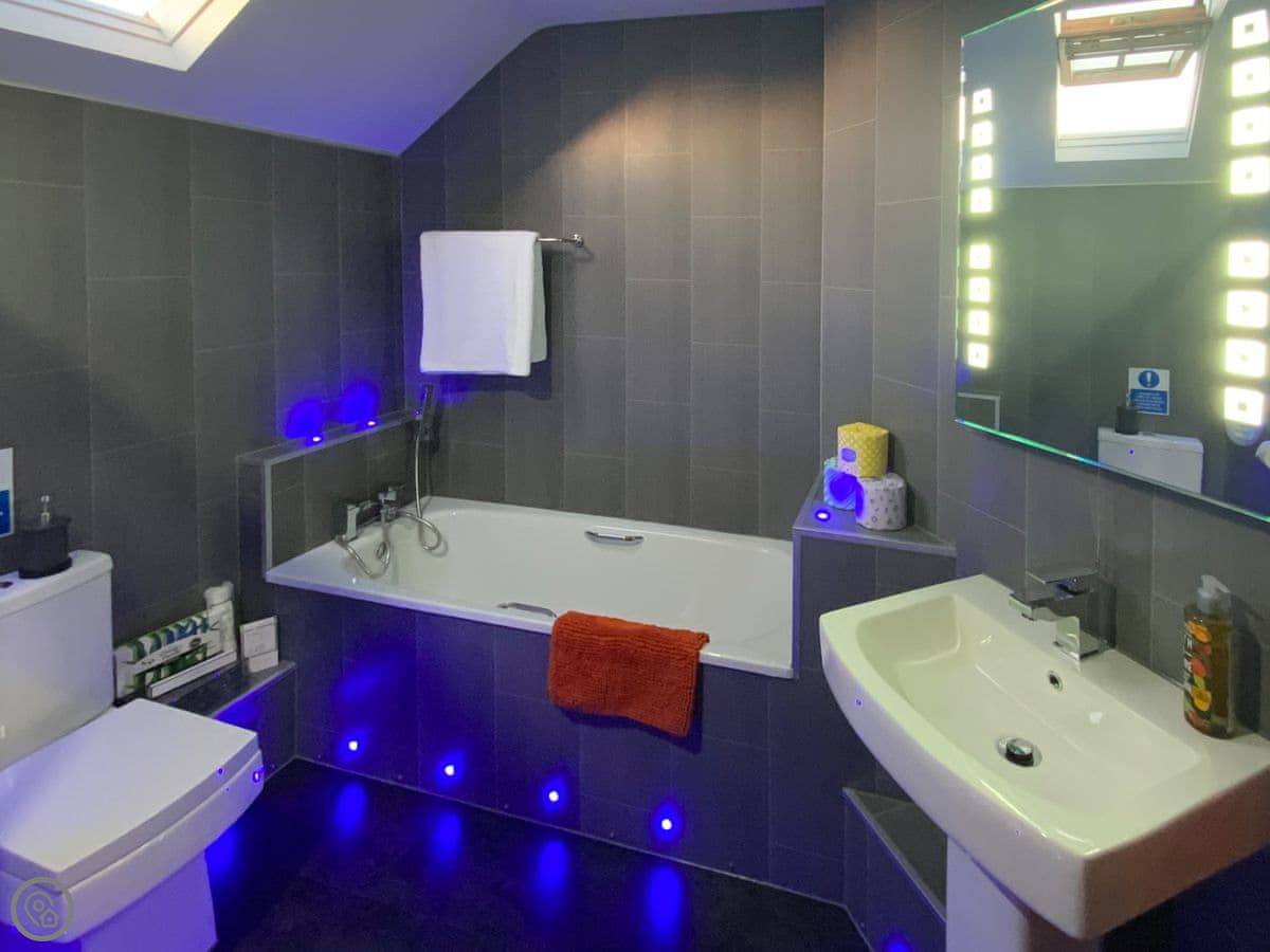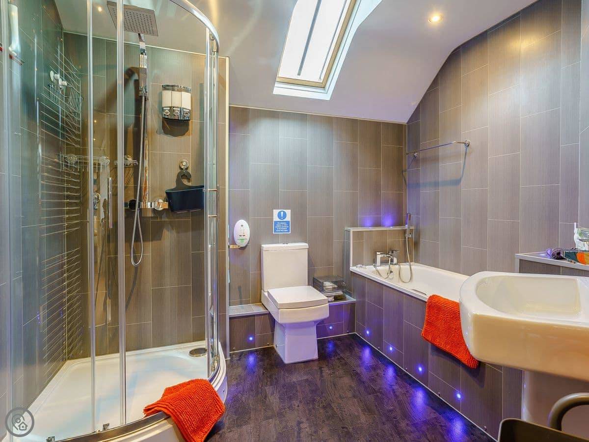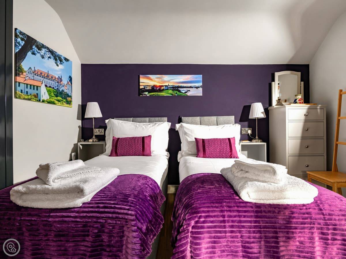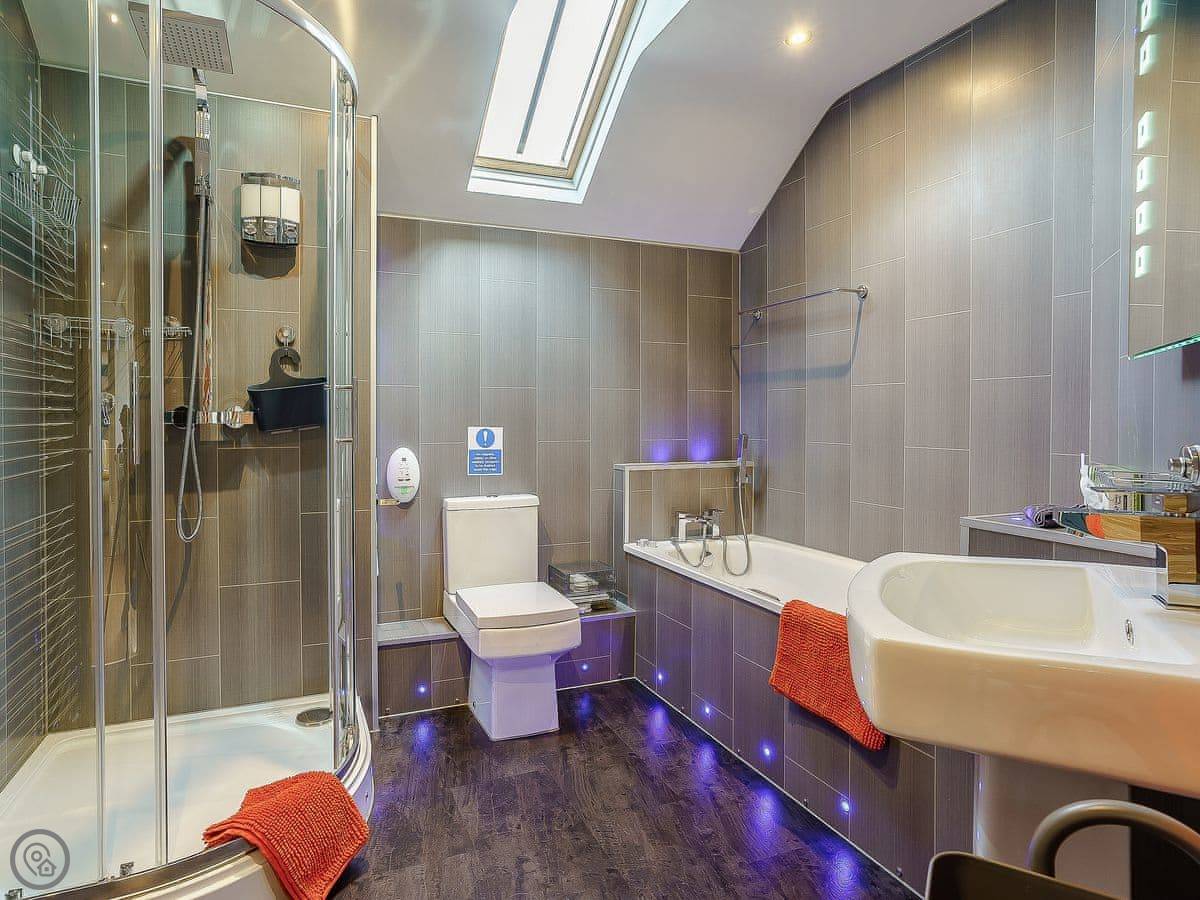 It sleeps five, in two bedrooms, with an extra single bed on the large landing. That landing area has a desk and can be used as a bit of a den. There's one bathroom upstairs with a bath and a separate shower. The rating is 4 Star, so it's comfortable and well-finished.