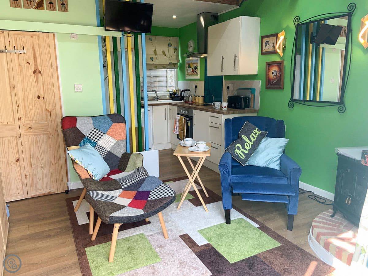The Barn has been designed with attention to detail by the owners creating a fabulous space. A fully equipped kitchen with oven, hob, fridge freezer, dishwasher and washing machine, a wet room, pull-down double bed with charging points fitted and a Smart TV. The barn has its own private entrance and parking space.