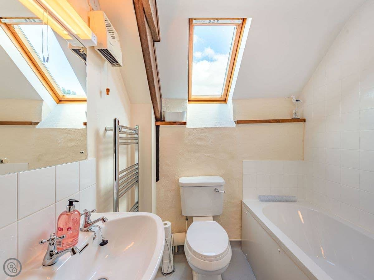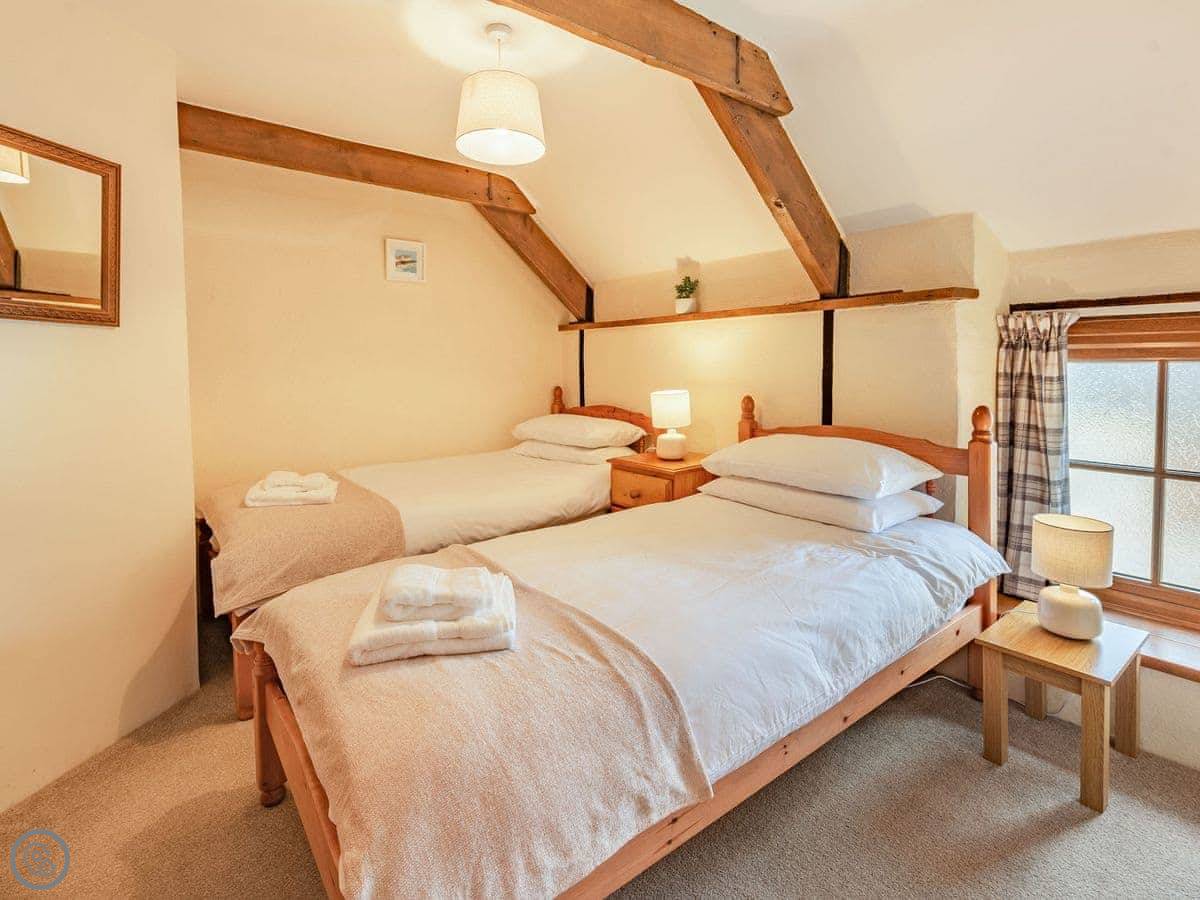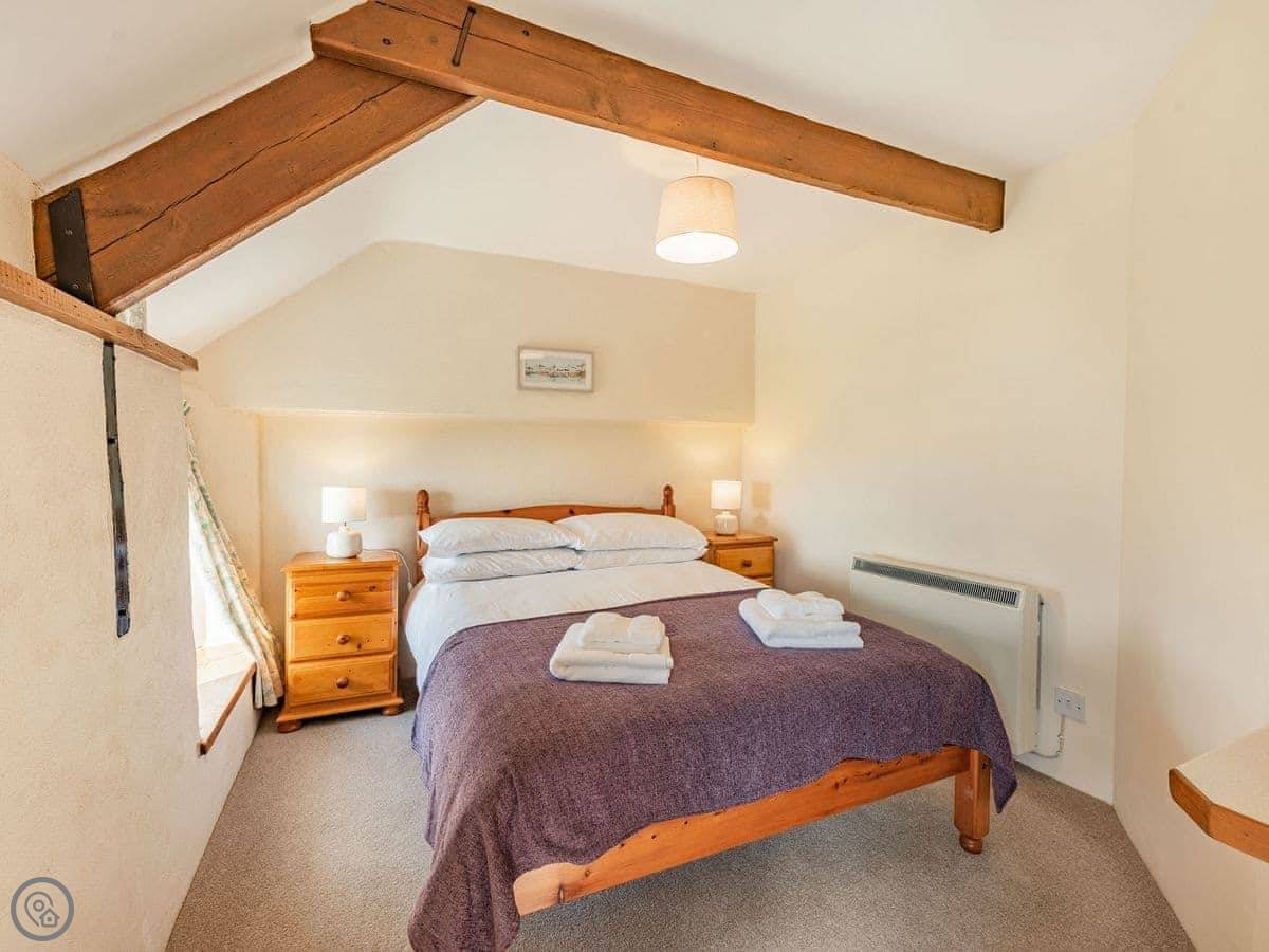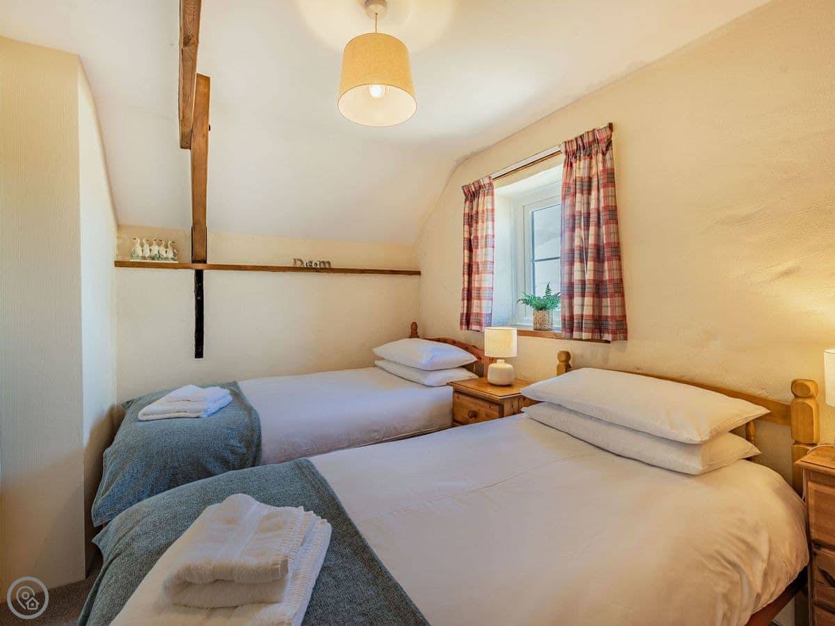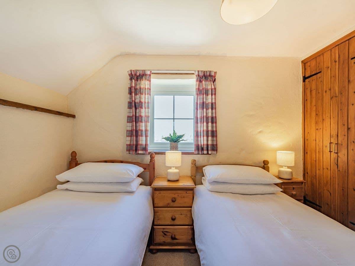 It sleeps four. Two bedrooms upstairs, one bathroom. It's a 3 Star place, so it's comfortable and clean. The stairs are a proper cottage staircase. They're fine, just steep and narrow.