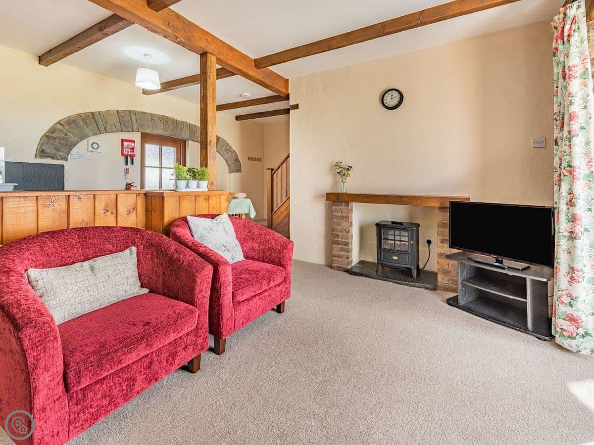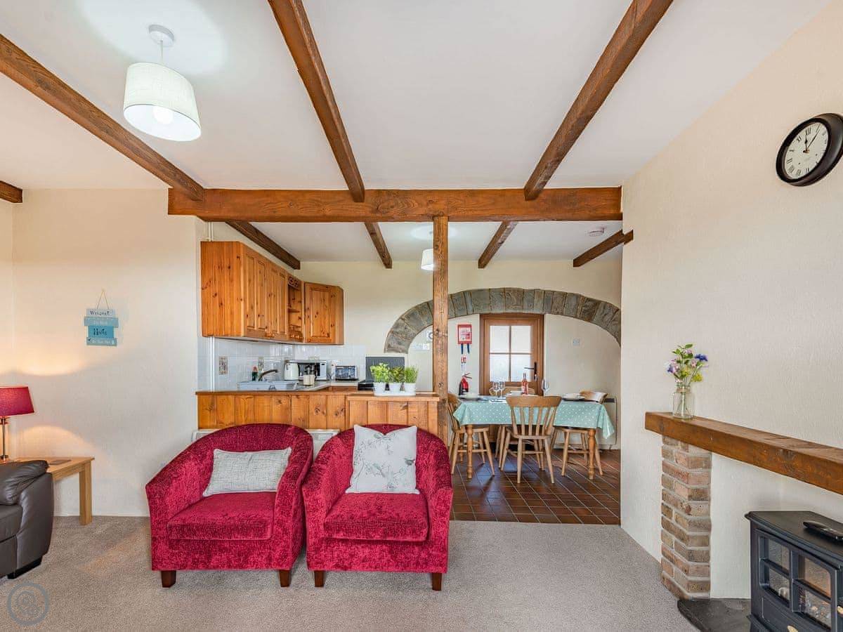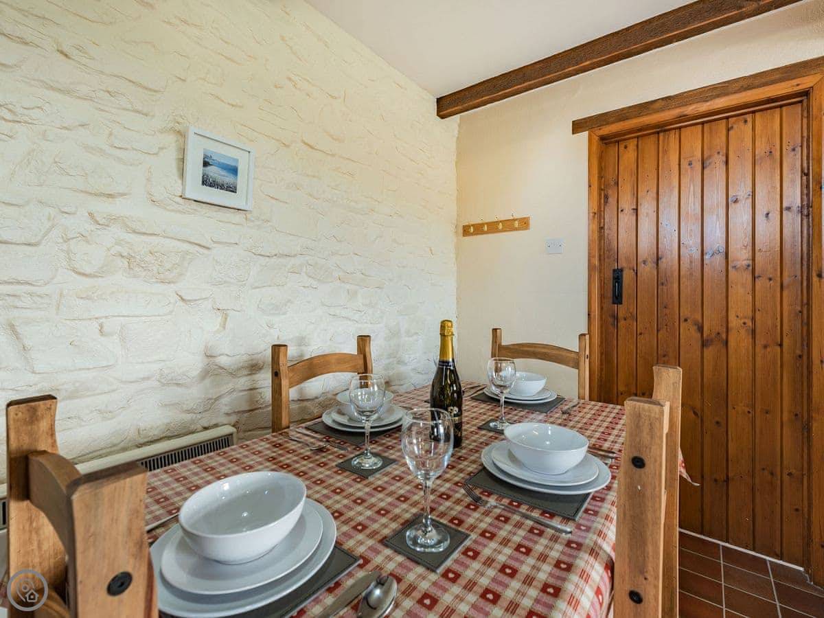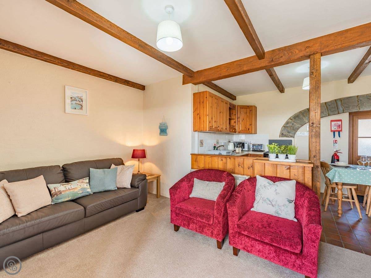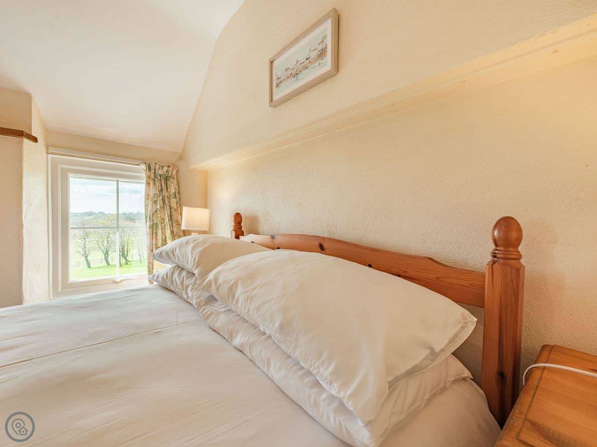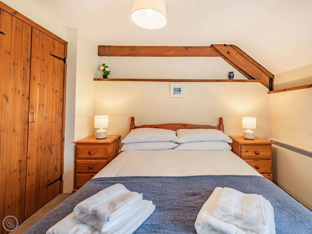 It sleeps four. Two bedrooms upstairs, one bathroom. It's a 3 Star place, so it's comfortable and clean. The stairs are a proper cottage staircase. They're fine, just steep and narrow.