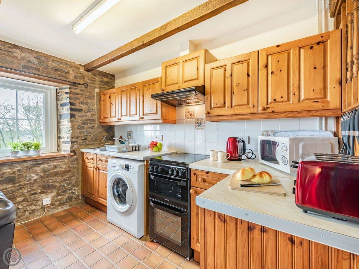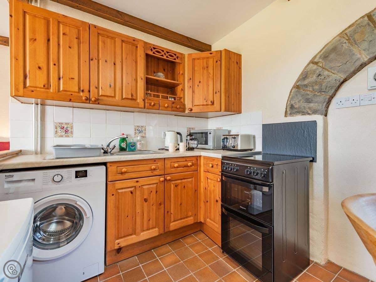 Facilities are what you'd expect. Washing machine, WiFi, bedding and towels are provided. The kitchen is open plan with the living area. No pets, sorry.