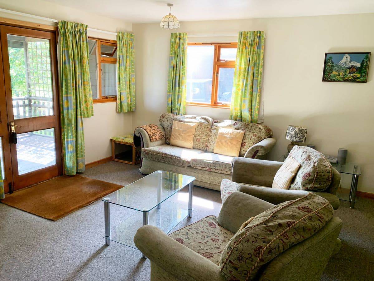 It sleeps four. Two bedrooms, one bathroom. Has the Three Star rating, so it's clean and comfortable. The lodge is open plan, lounge, kitchen and dining all in one space.
