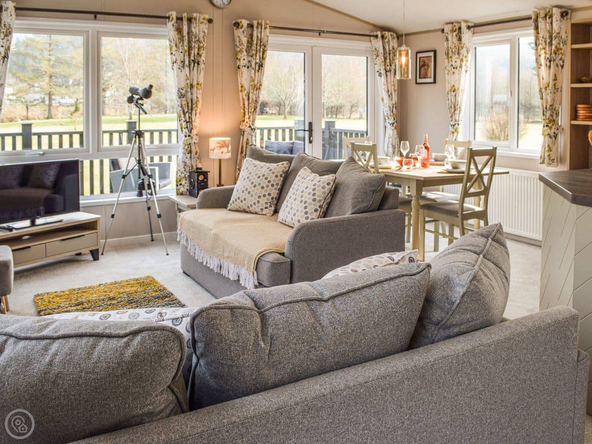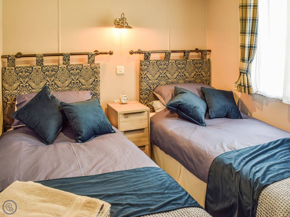 You will be so comfortable in this stunning lodge which has an open plan lounge/diner/kitchen a Freeview Smart TV with DVD, Bluetooth speaker, gas central heating and patio doors onto a decking area which wraps around the front and side of the lodge. The kitchen is exceptionally well-equipped ensuring that you can self-cater with ease, with a separate utility room offering wet weather gear storage, a washing machine and useful sink. There is a surprisingly spacious, welcoming double bedroom with Freeview TV, dressing room and en-suite bathroom with shower over bath. The twin bedroom next door benefits from a Freeview Smart TV, ensuring that everyone enjoys the best of entertainment. There is also a family shower room with good-sized walk-in shower.
