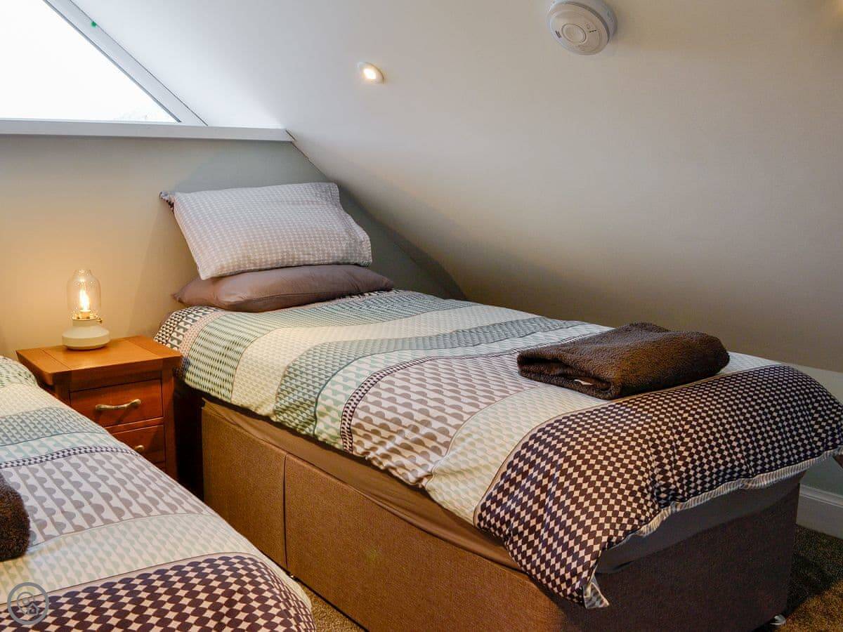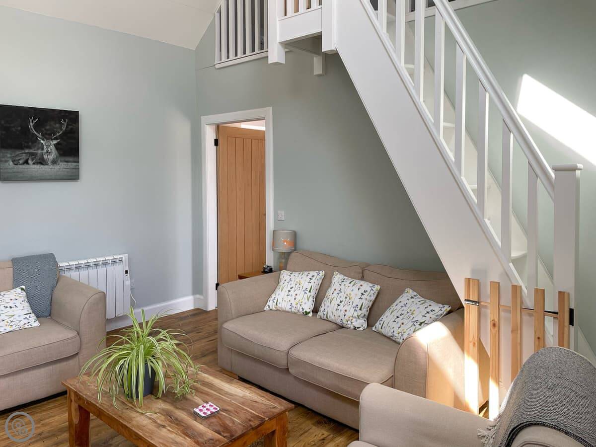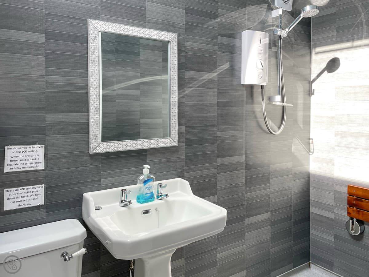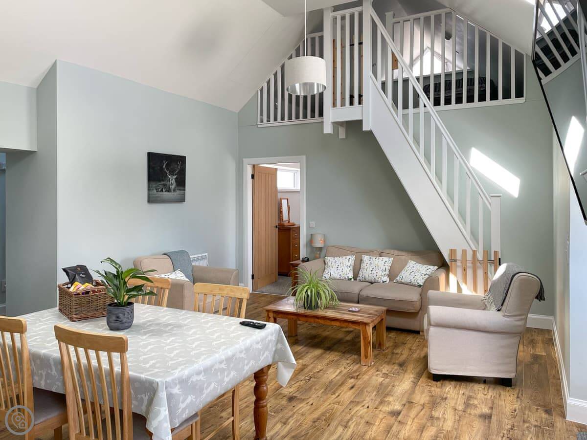It sleeps four. Two bedrooms, one bathroom. It's got a 4 Star rating. One bedroom's on the ground floor and has a wet room shower next to it. The other two beds are up a steep spiral staircase on a mezzanine. You need to be okay with that.