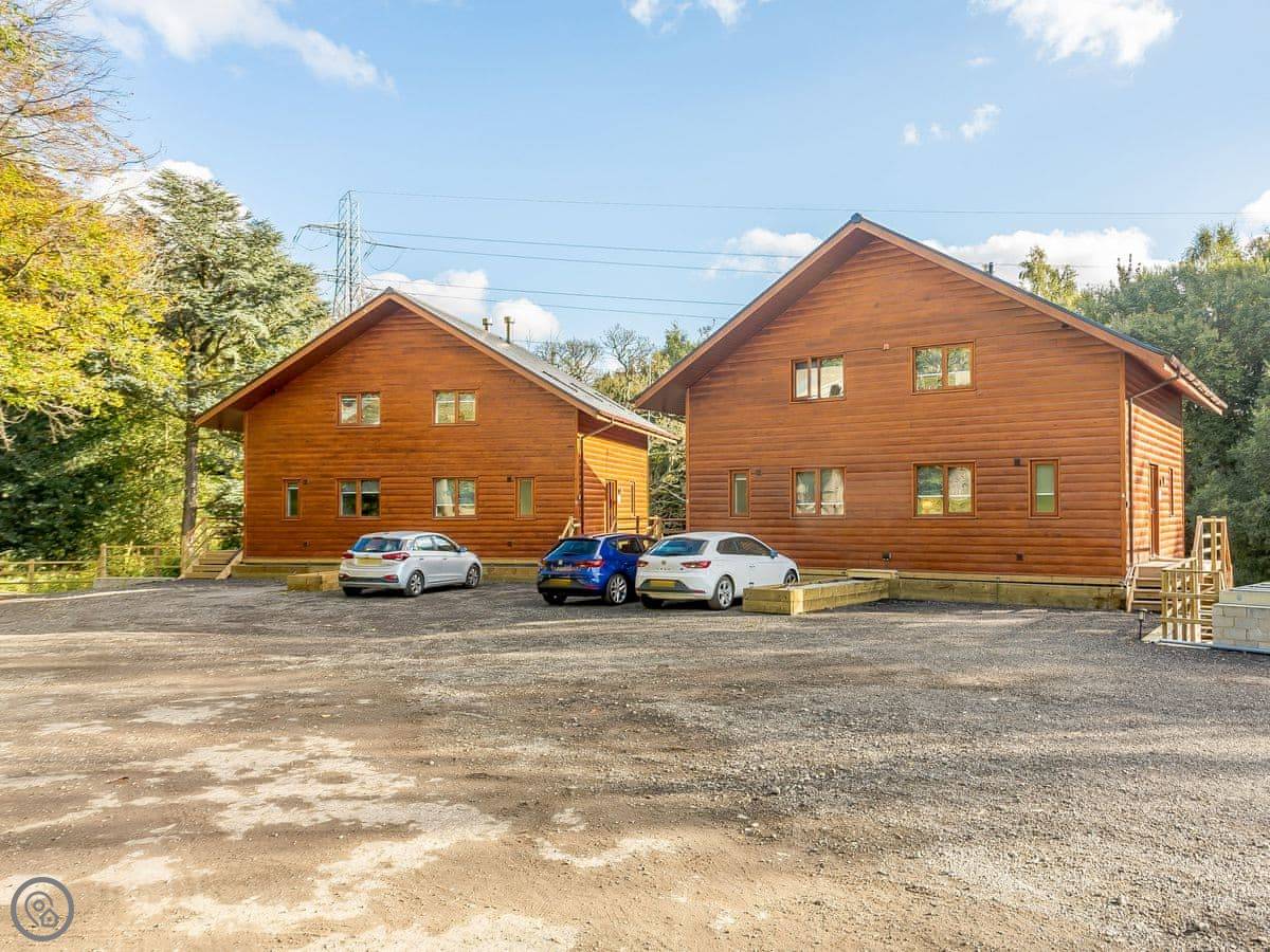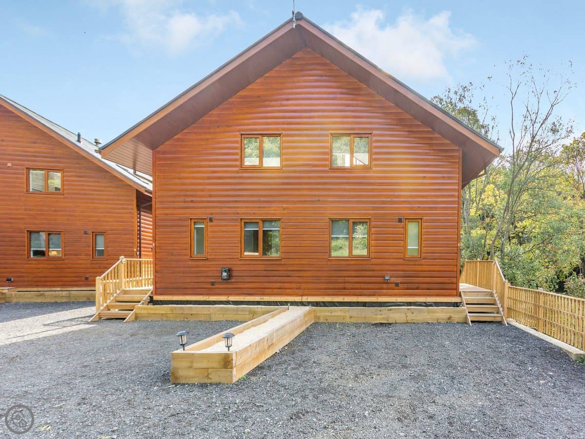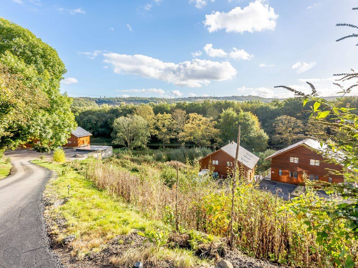 Waterside Lodge Six is a wooden lodge in a place called Ashgrove Country Park near Elland. It's on the edge of a lake, so you get a water view from the main rooms. It's one of a pair, semi-detached.