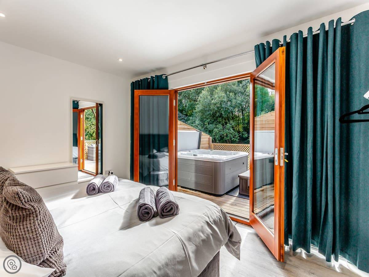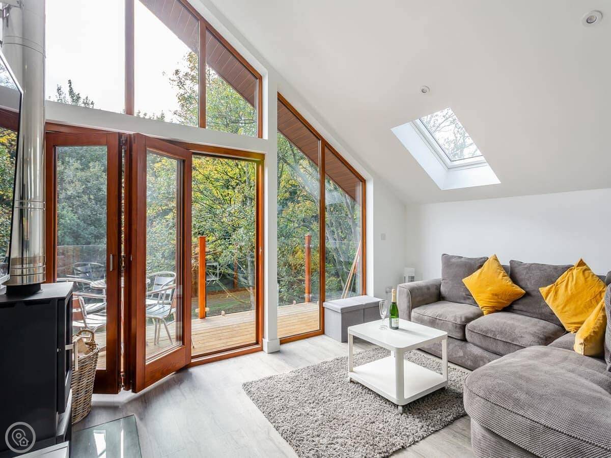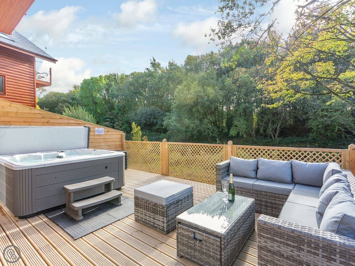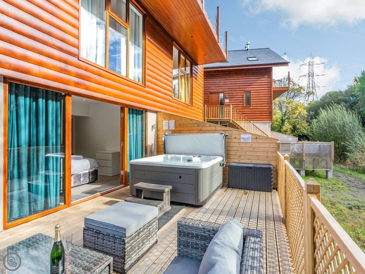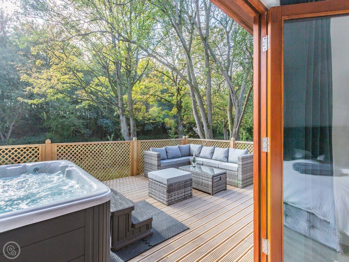 The site itself is about 40 acres of old parkland. It's quiet. There's a hot tub on the decking for the lodge.
