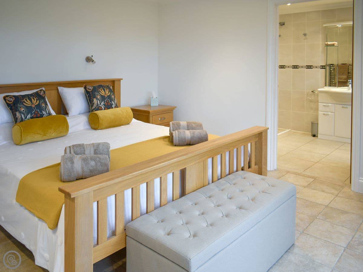 The place sleeps four, but it's one bedroom. There's a super king bed and a double sofa bed in the living room. It's got a 4 Star rating. The living room was a conservatory, so it's bright. It has underfloor heating.