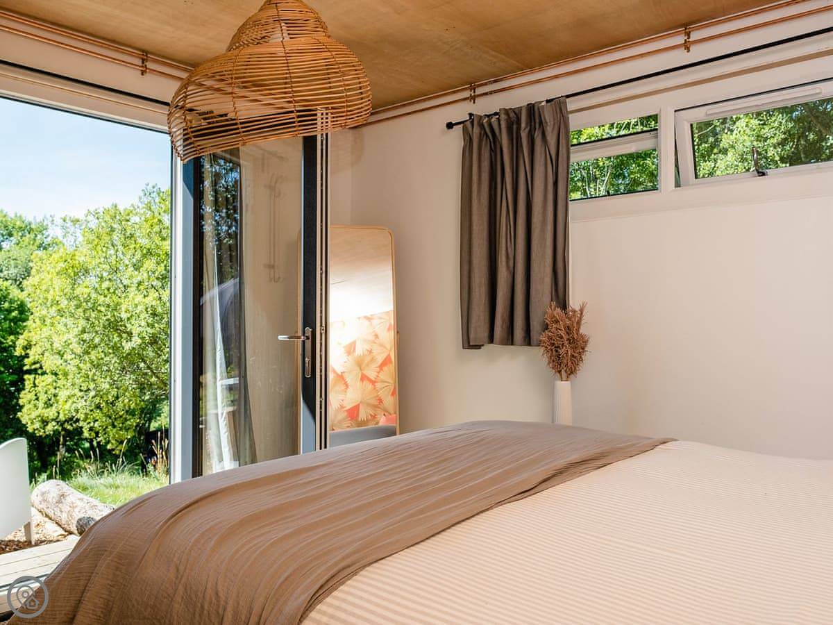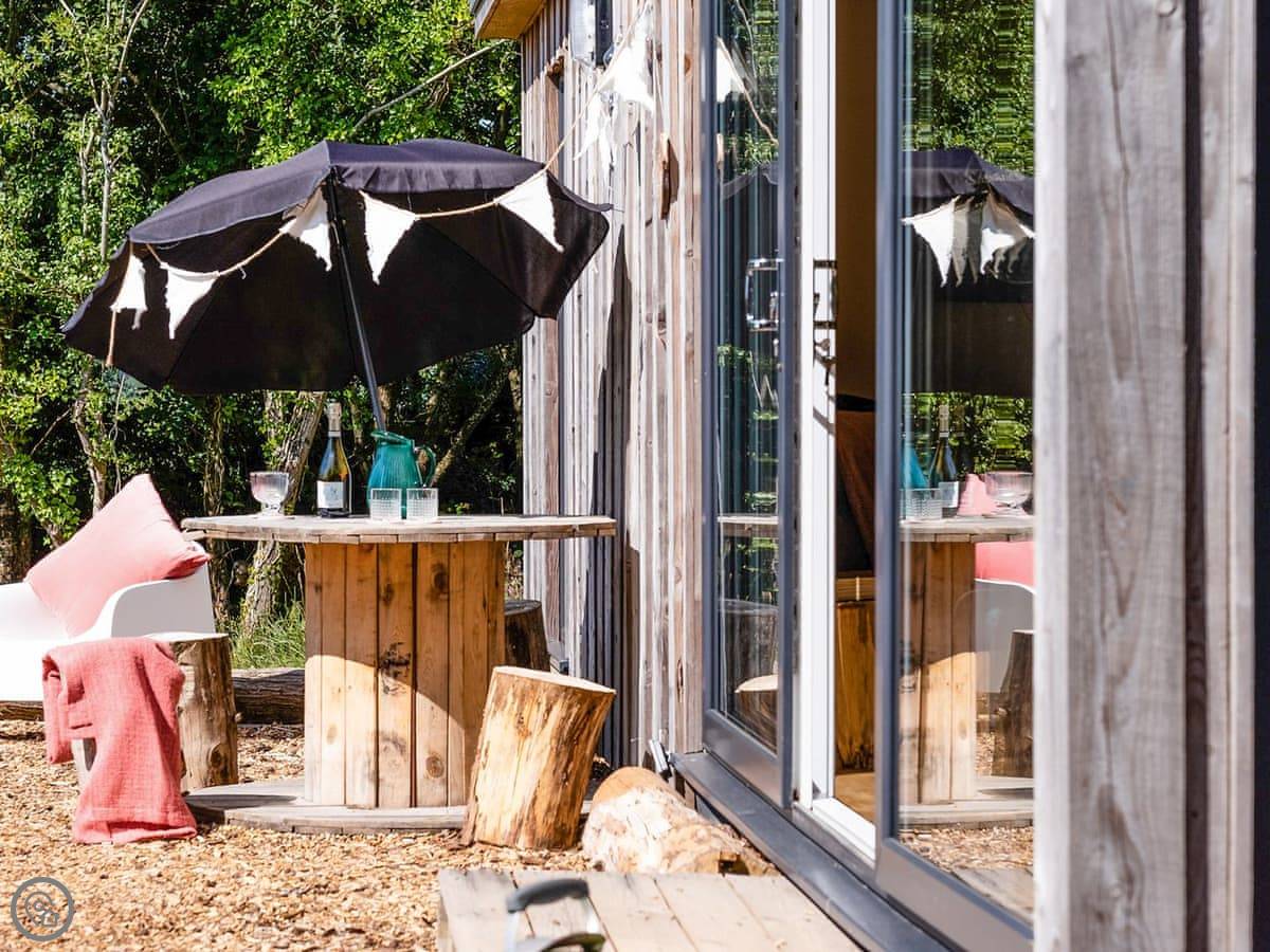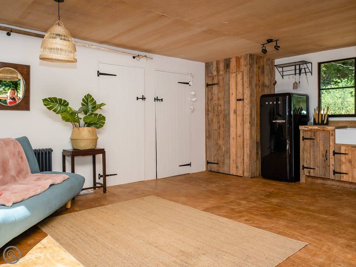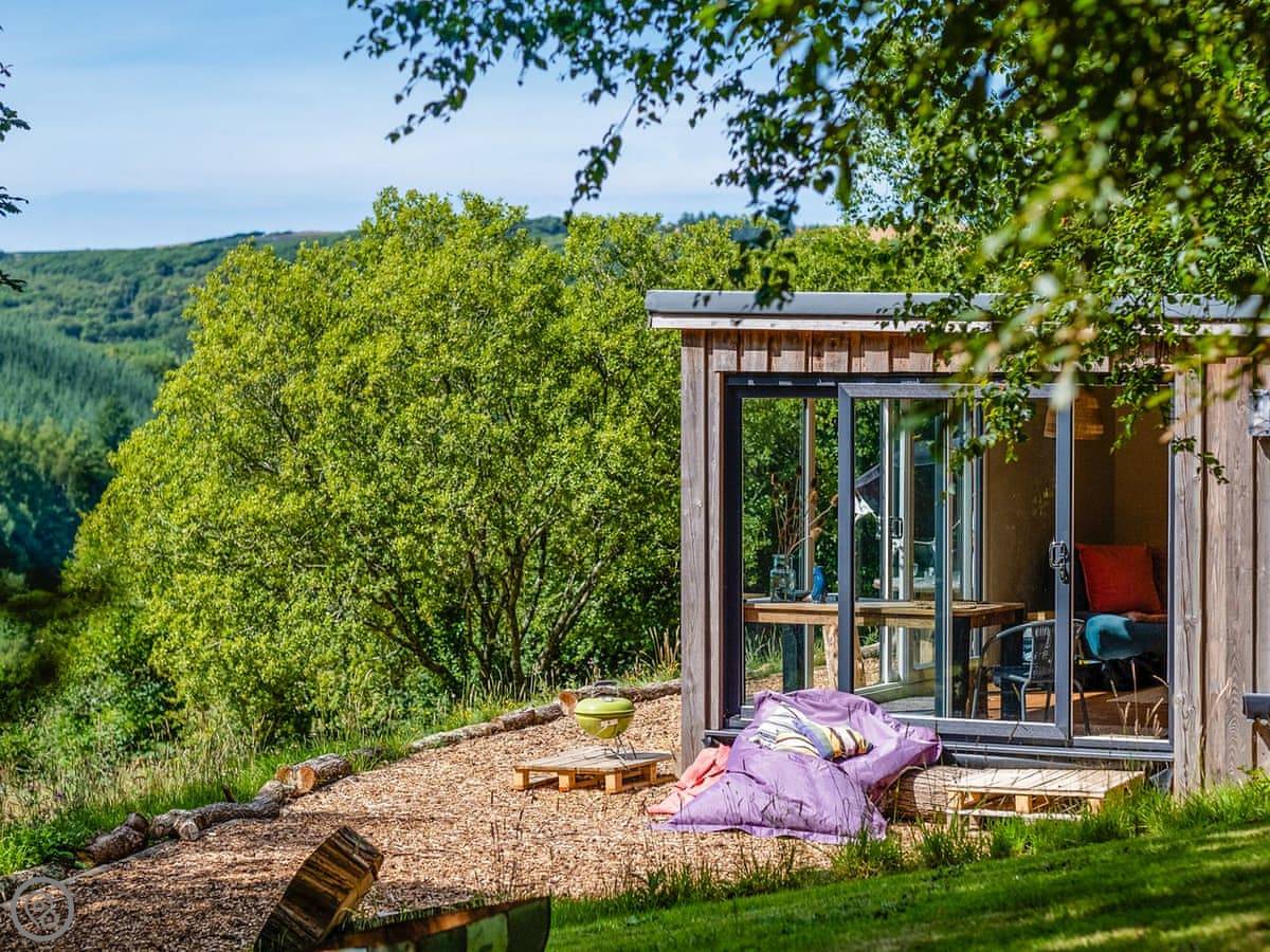 On the ground floor is a large comfortable living room with a corner sofa, a cosy open fireplace, Smart TV and a selection of games to enjoy, not forgetting the piano for those who fancy tickling the ivories. Then there’s a separate dining room with a garden view, a kitchen/diner with everything you’d expect to make this a home from home. Upstairs you’ll find four bedrooms and a separate family bathroom with bath and separate shower cubicle. The bedrooms include a super kingsize with en-suite shower room, a bunk, a twin and a kingsize, all with beautiful countryside views. Step outside and enjoy the privacy on offer with an enclosed private garden and raised sun decks where you will find a fantastic, covered barbecue deck with table and chairs, a firepit and solar powered lighting. There is also a large south facing veranda to enjoy the morning sun. Newly built in 2022, The Bach offers privacy and although ideal for a peaceful getaway for two people it will sleep up to four by way of a double sofa bed in the living area. The latter has a Smart TV and is open plan with the kitchen/dining room which offers contemporary equipment including a dishwasher and a coffee machine. The bedroom has a kingsize bed and there’s a shower room with walk-in shower. Outside the property benefits from a secluded and elevated position on the land and offers grass areas and a patio with outdoor seating.