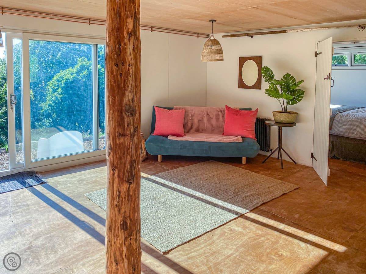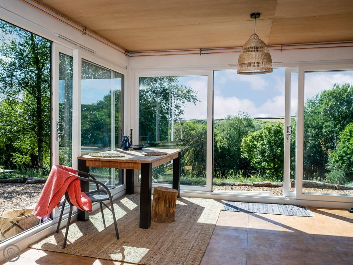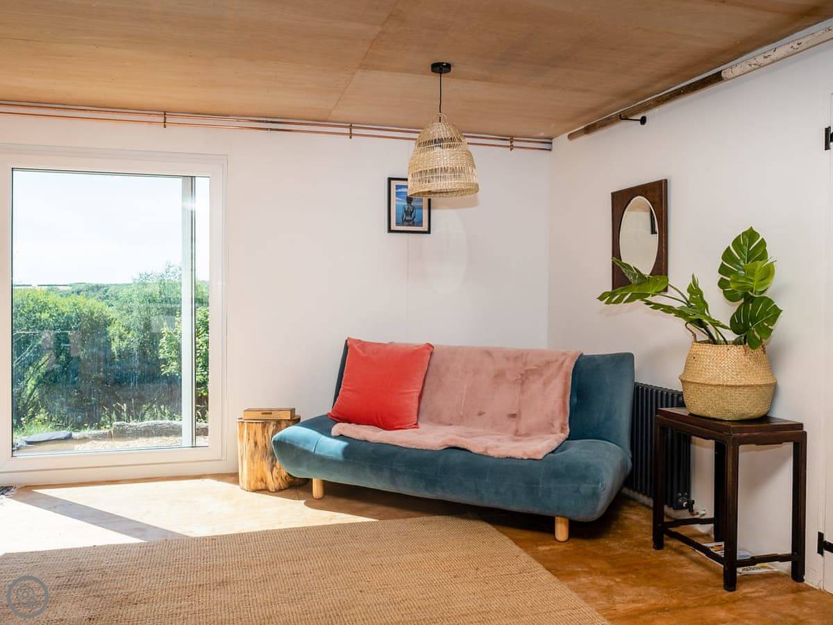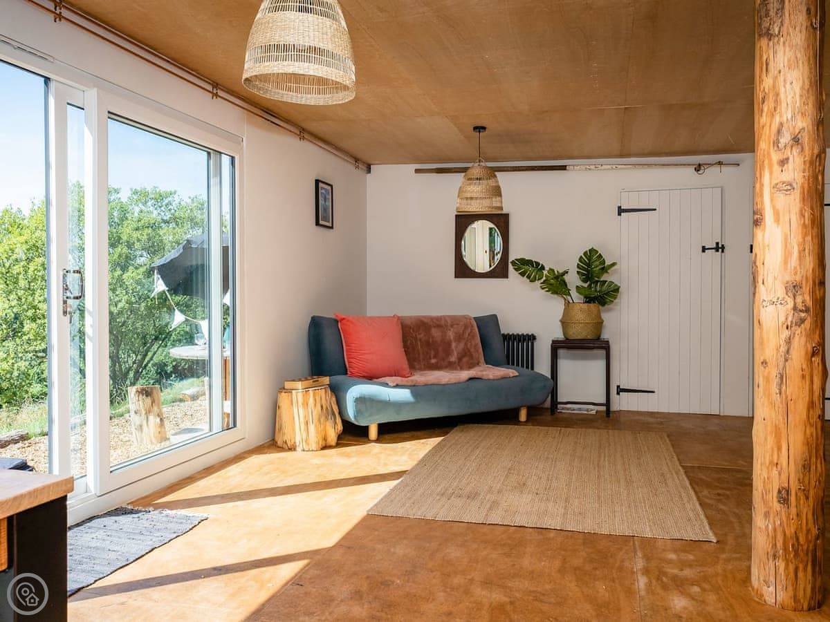 On the ground floor is a large comfortable living room with a corner sofa, a cosy open fireplace, Smart TV and a selection of games to enjoy, not forgetting the piano for those who fancy tickling the ivories. Then there’s a separate dining room with a garden view, a kitchen/diner with everything you’d expect to make this a home from home. Upstairs you’ll find four bedrooms and a separate family bathroom with bath and separate shower cubicle. The bedrooms include a super kingsize with en-suite shower room, a bunk, a twin and a kingsize, all with beautiful countryside views. Step outside and enjoy the privacy on offer with an enclosed private garden and raised sun decks where you will find a fantastic, covered barbecue deck with table and chairs, a firepit and solar powered lighting. There is also a large south facing veranda to enjoy the morning sun. Newly built in 2022, The Bach offers privacy and although ideal for a peaceful getaway for two people it will sleep up to four by way of a double sofa bed in the living area. The latter has a Smart TV and is open plan with the kitchen/dining room which offers contemporary equipment including a dishwasher and a coffee machine. The bedroom has a kingsize bed and there’s a shower room with walk-in shower. Outside the property benefits from a secluded and elevated position on the land and offers grass areas and a patio with outdoor seating.