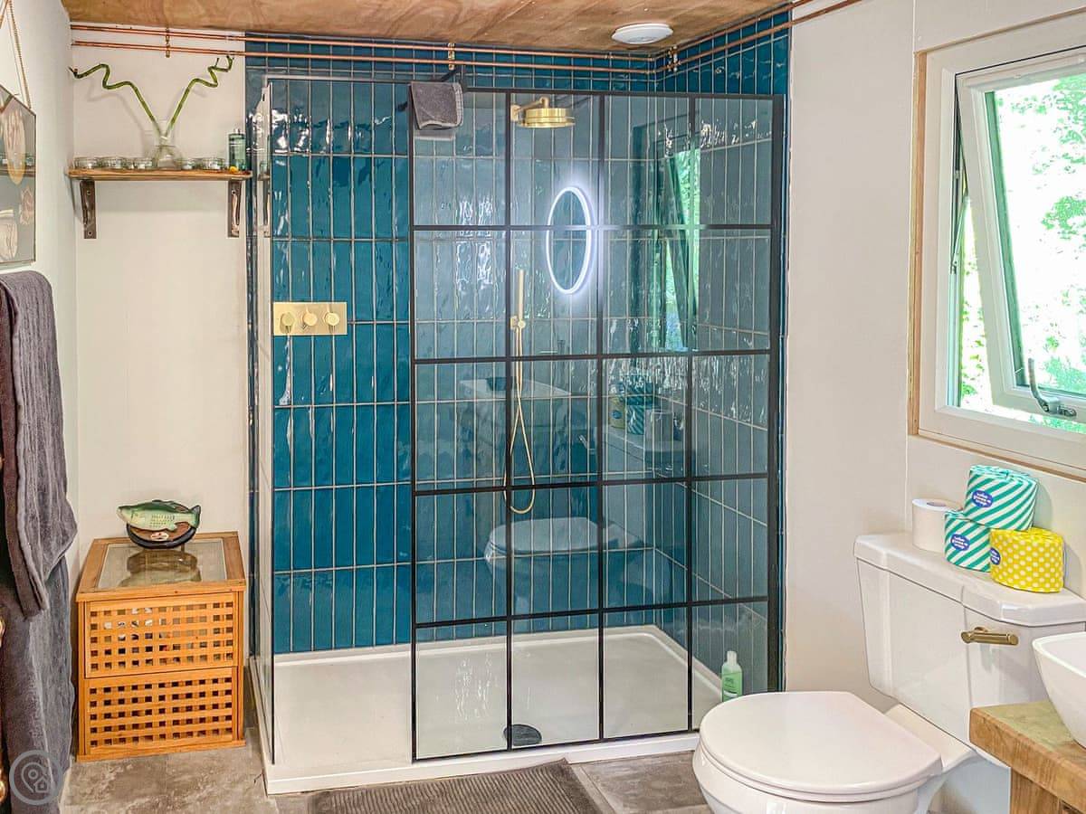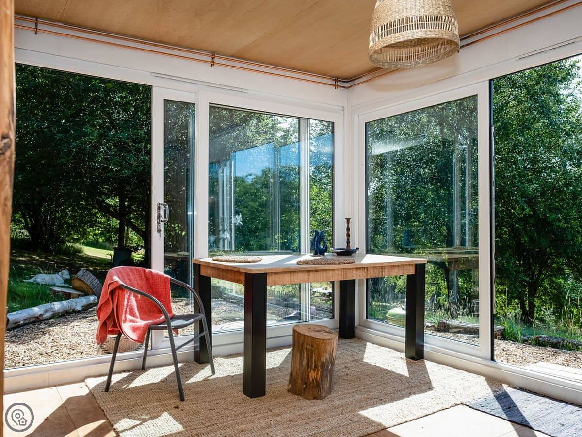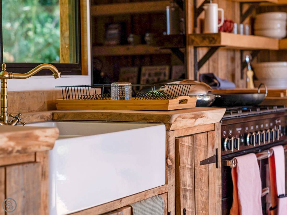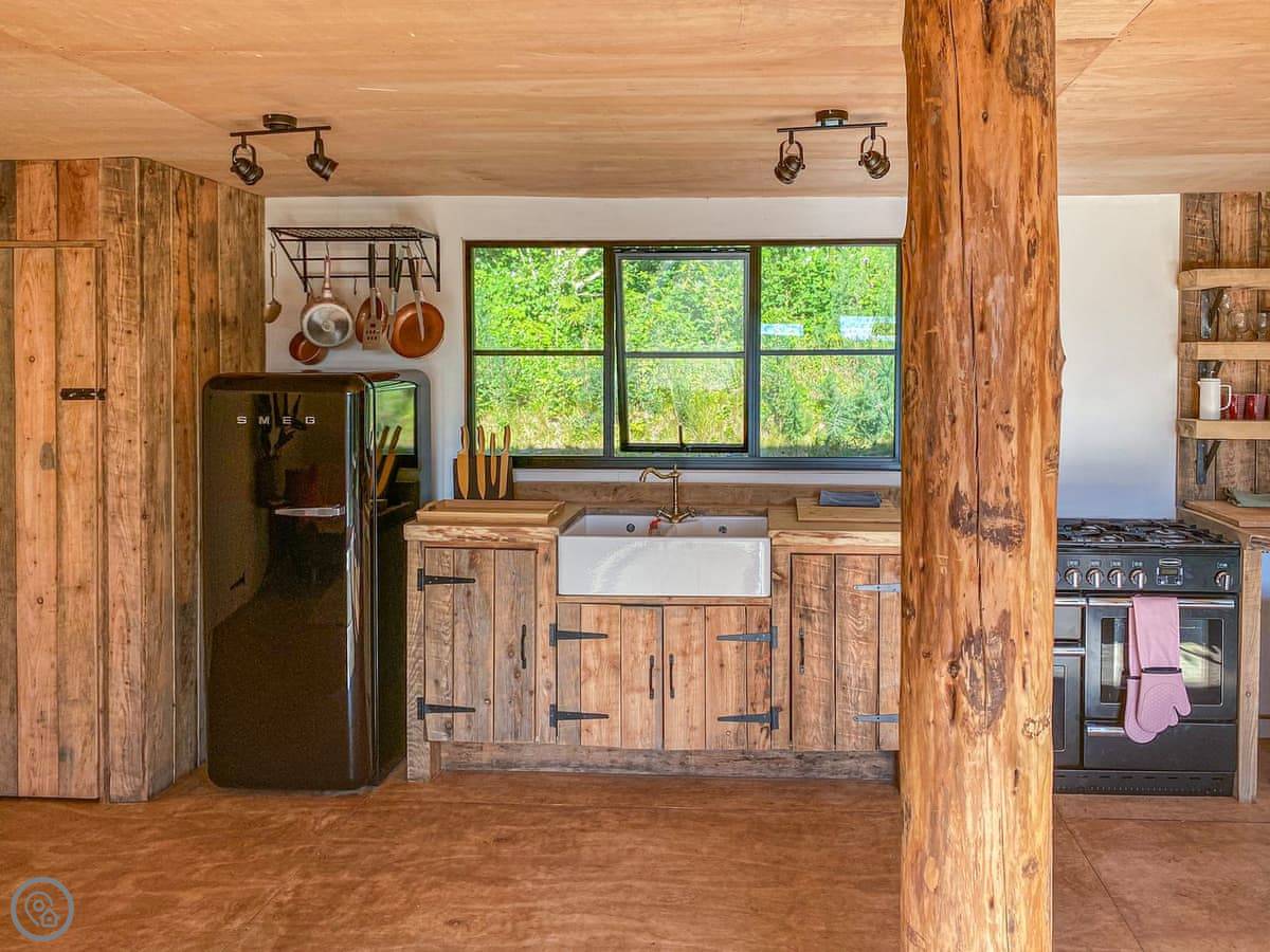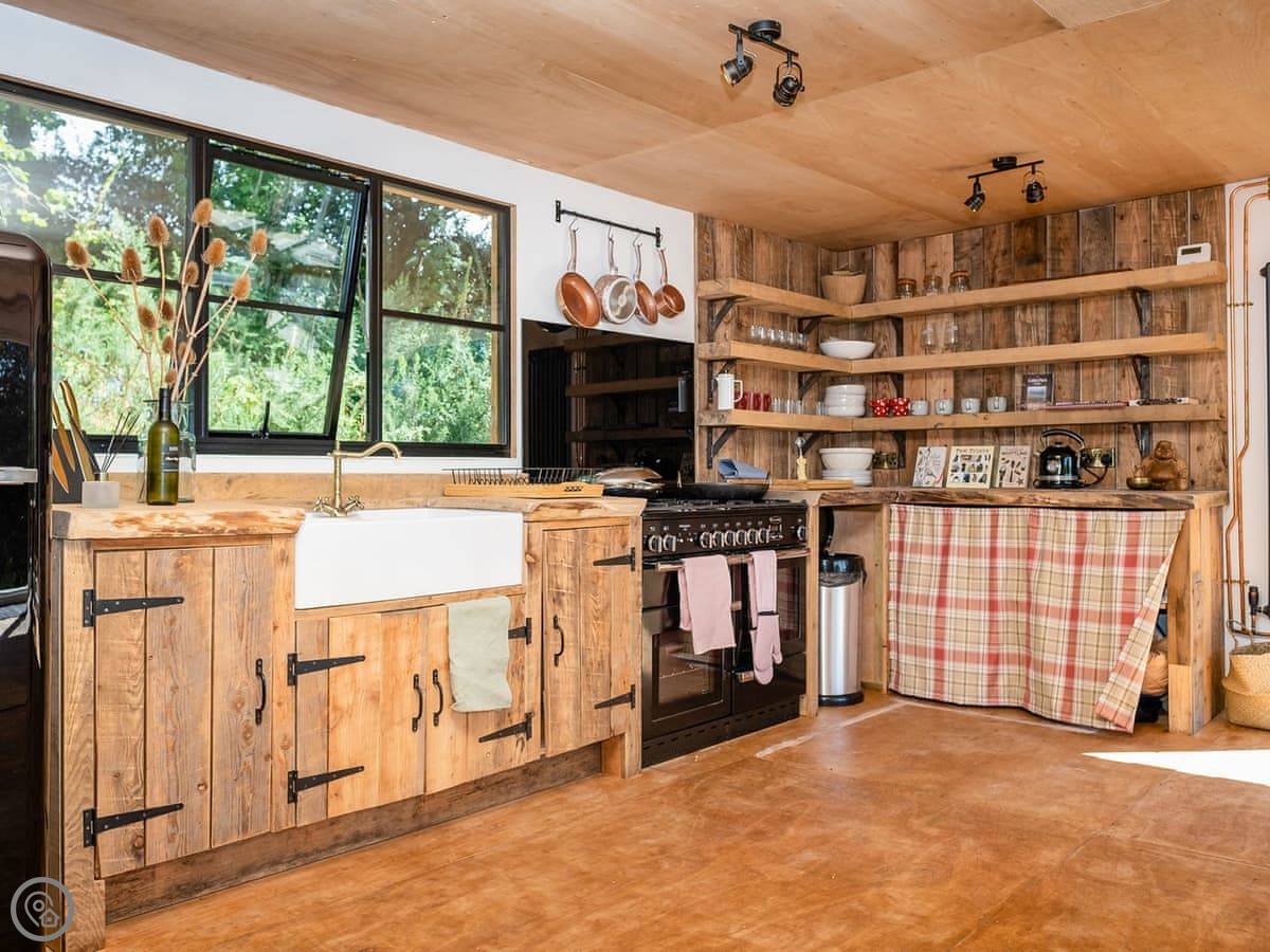 On the ground floor is a large comfortable living room with a corner sofa, a cosy open fireplace, Smart TV and a selection of games to enjoy, not forgetting the piano for those who fancy tickling the ivories. Then there’s a separate dining room with a garden view, a kitchen/diner with everything you’d expect to make this a home from home. Upstairs you’ll find four bedrooms and a separate family bathroom with bath and separate shower cubicle. The bedrooms include a super kingsize with en-suite shower room, a bunk, a twin and a kingsize, all with beautiful countryside views. Step outside and enjoy the privacy on offer with an enclosed private garden and raised sun decks where you will find a fantastic, covered barbecue deck with table and chairs, a firepit and solar powered lighting. There is also a large south facing veranda to enjoy the morning sun. Newly built in 2022, The Bach offers privacy and although ideal for a peaceful getaway for two people it will sleep up to four by way of a double sofa bed in the living area. The latter has a Smart TV and is open plan with the kitchen/dining room which offers contemporary equipment including a dishwasher and a coffee machine. The bedroom has a kingsize bed and there’s a shower room with walk-in shower. Outside the property benefits from a secluded and elevated position on the land and offers grass areas and a patio with outdoor seating.