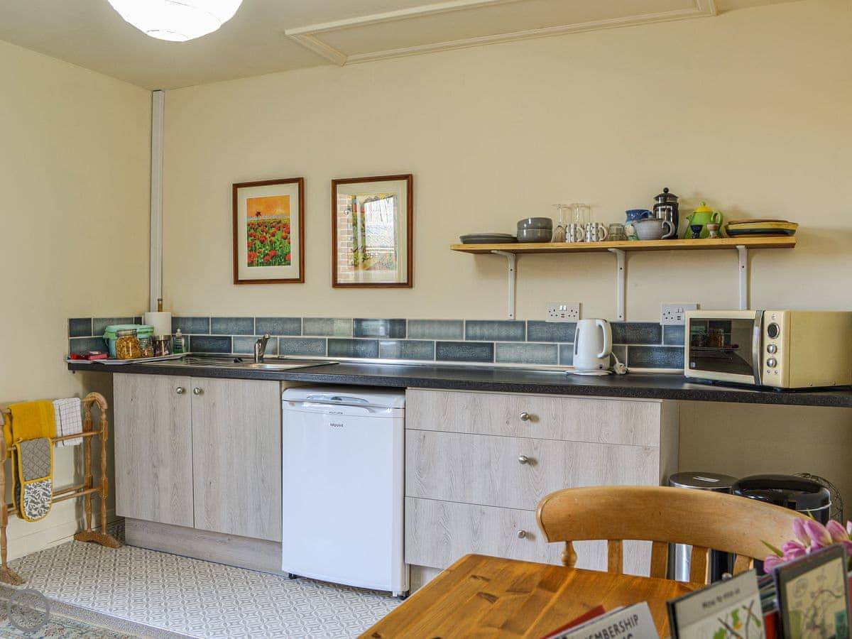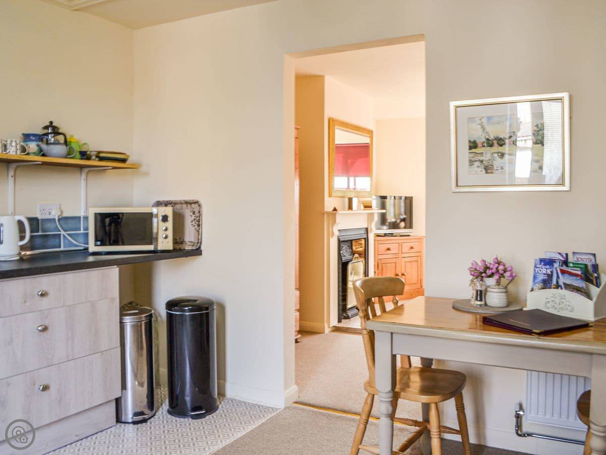 Resting on the edge of the pretty rural village of Shiptonthorpe, in the East Riding of Yorkshire, Coriander is a cosy mid-terraced ground floor apartment. Well presented, it is ideal for a couple looking to explore the Yorkshire Wolds. Coriander is one of four properties which formed a well respected bed and breakfast and the accommodation is all on the ground floor. Enter straight into the large kitchen/dining room, which has plenty of cupboard space to store your holiday essentials and work top area to prepare a delicious picnic to enjoy whilst out exploring. A dining table for two sits to one side and an archway takes you through to the living area/bedroom where you will find a kingsize bed and deep-filled comfortable sofa. The large Freeview TV is ideally placed so you can snuggle up during the evening to catch up with your favourite soap. This room offers lovely views out across a pretty cottage garden. After a long day exploring the Yorkshire Wolds, why not take a soak and relax tired muscles in the large corner bath? Coriander enjoys a shared mature garden with pretty cottage borders, lawn and seating area - perfect for an enjoying an early morning coffee whilst listening to the dawn chorus or for dining out during the warmer months.