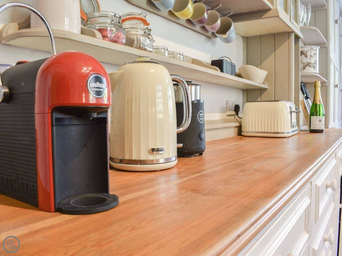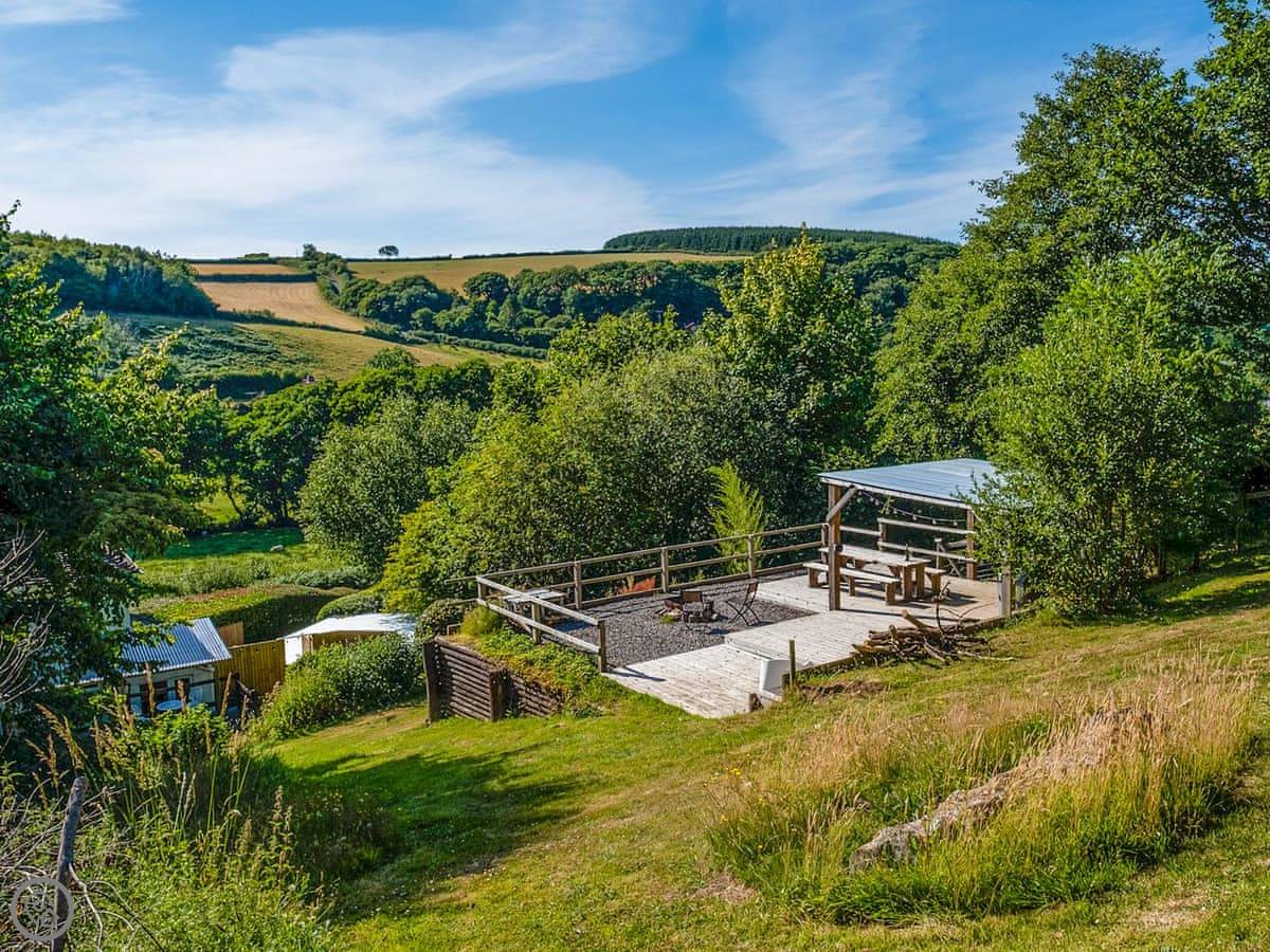 On the ground floor is a large comfortable living room with a corner sofa, a cosy open fireplace, Smart TV and a selection of games to enjoy, not forgetting the piano for those who fancy tickling the ivories. Then there’s a separate dining room with a garden view, a kitchen/diner with everything you’d expect to make this a home from home. Upstairs you’ll find four bedrooms and a separate family bathroom with bath and separate shower cubicle. The bedrooms include a super kingsize with en-suite shower room, a bunk, a twin and a kingsize, all with beautiful countryside views. Step outside and enjoy the privacy on offer with an enclosed private garden and raised sun decks where you will find a fantastic, covered barbecue deck with table and chairs, a firepit and solar powered lighting. There is also a large south facing veranda to enjoy the morning sun. Newly built in 2022, The Bach offers privacy and although ideal for a peaceful getaway for two people it will sleep up to four by way of a double sofa bed in the living area. The latter has a Smart TV and is open plan with the kitchen/dining room which offers contemporary equipment including a dishwasher and a coffee machine. The bedroom has a kingsize bed and there’s a shower room with walk-in shower. Outside the property benefits from a secluded and elevated position on the land and offers grass areas and a patio with outdoor seating.
