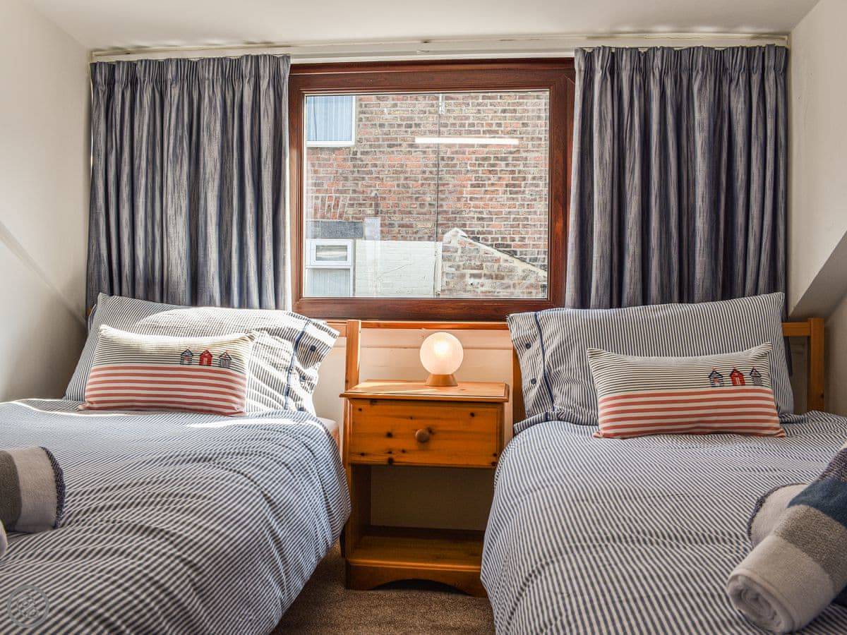 Up another flight of stairs are the two bedrooms. The main one has a big window looking right over the town and the water. The second bedroom has two singles. There's one shower room, it's on the first floor next to the kitchen.
