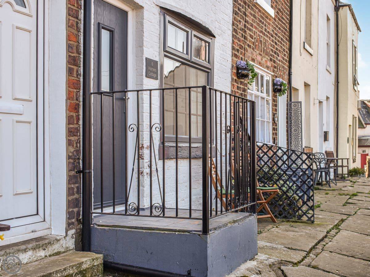 It's Horner's Cottage up on the harbour wall. It's not grand, it's a proper Whitby fisherman's cottage. That means the stairs are steep, and the layout is a bit upside down. You come in on the middle floor.
