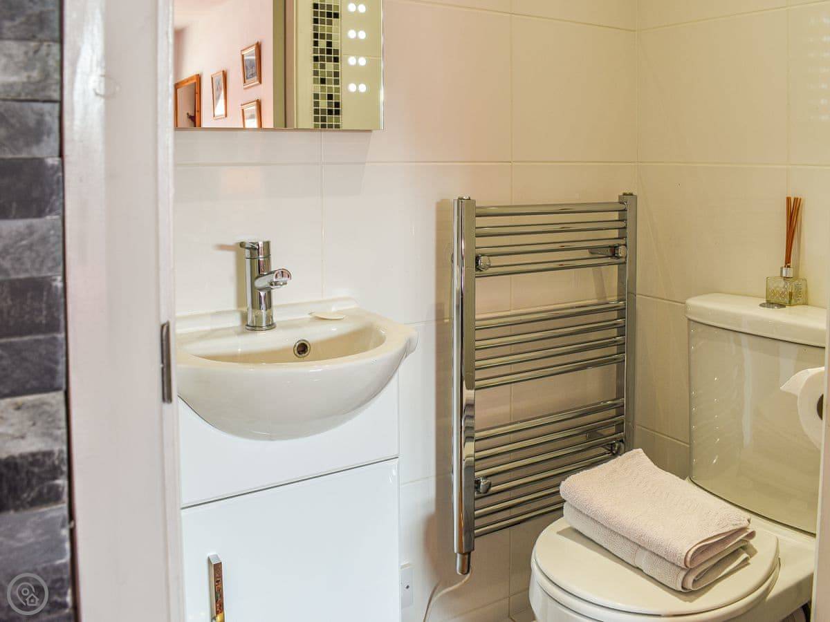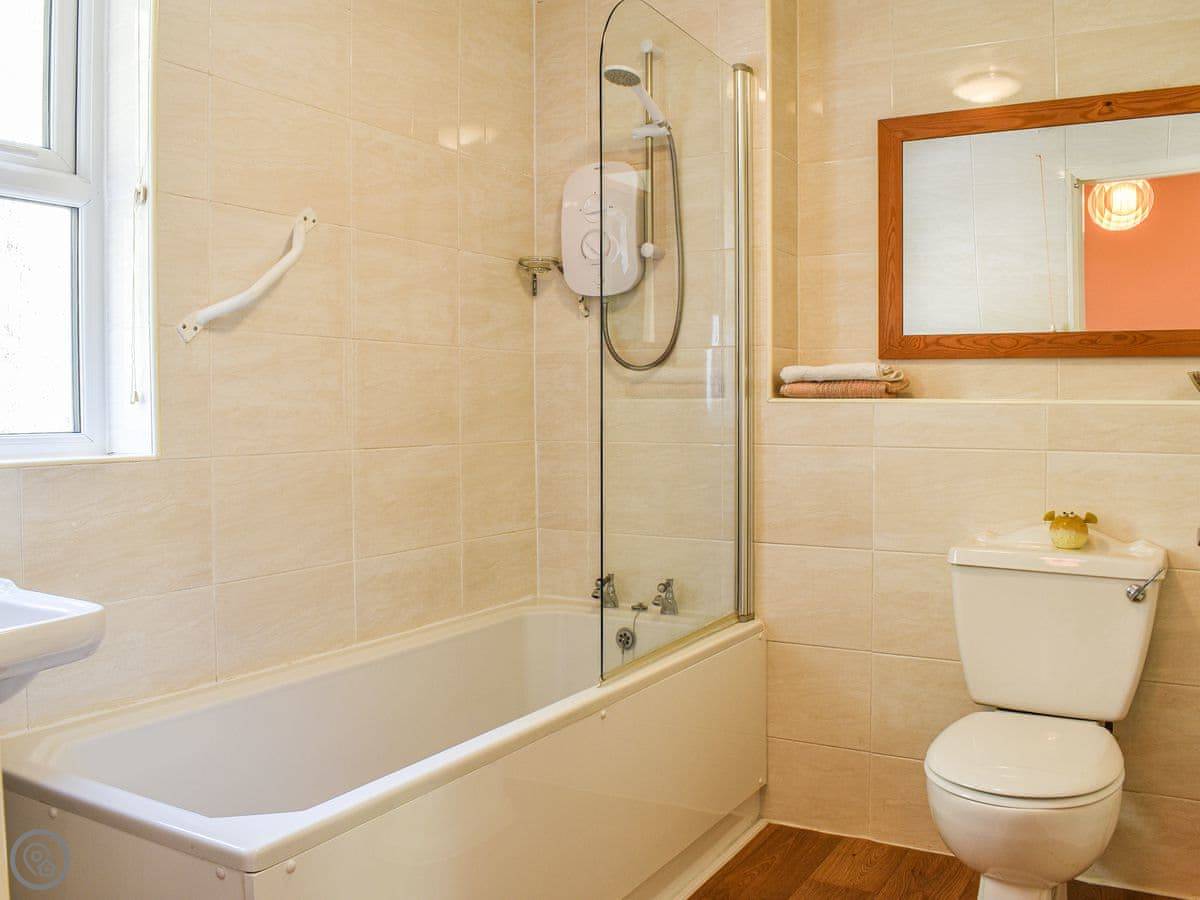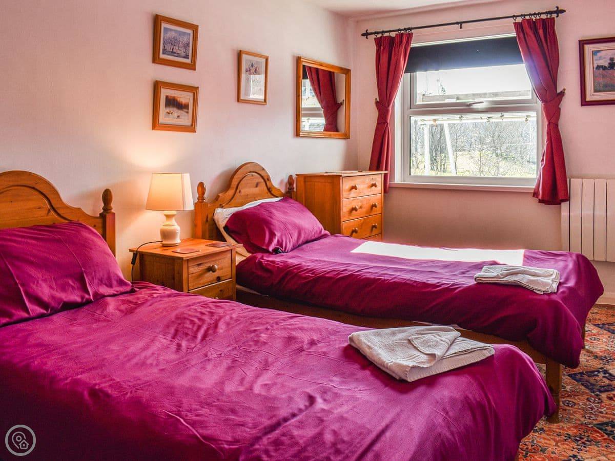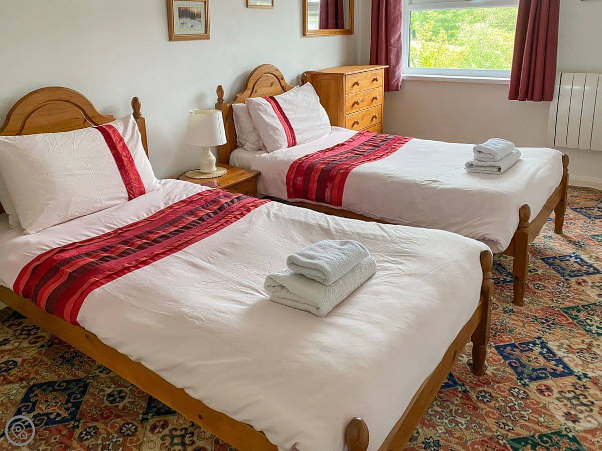 It sleeps four. Two bedrooms, both upstairs, with two bathrooms. One's an ensuite to the twin room. It's got a 3 Star rating, which basically means it's comfortable and clean, not luxurious.