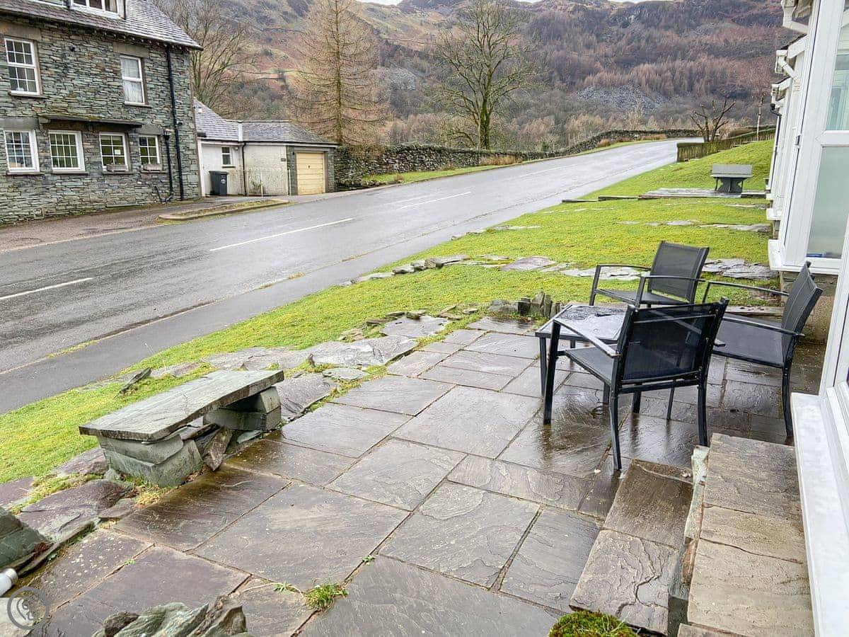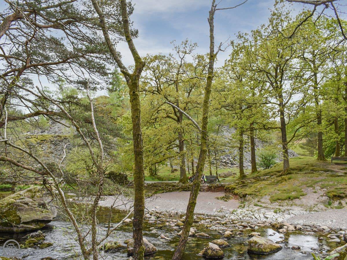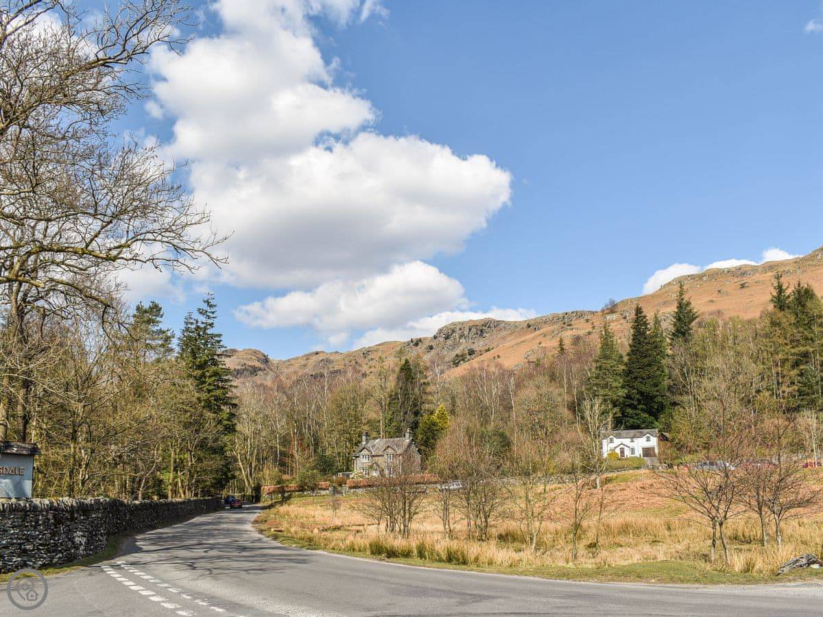 You're right in the valley. For a walk, the Langdale Pikes are about two miles further up. Elterwater village is half a mile down the river path. They've got a pub and a cafe by the lake.