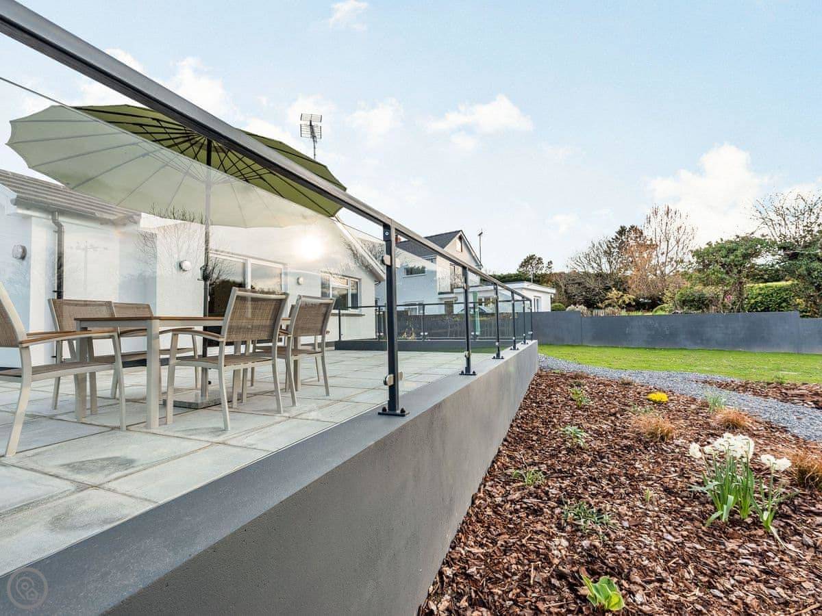 This delightful holiday home has been fully renovated in 2022 to a high standard throughout. The open plan kitchen, dining and living room is flooded with natural light. There are two sets of patio doors leading to a raised terrace and enclosed garden with distant sea views. This south facing garden really is a sun trap and perfect for relaxing in after a busy day exploring the area. The modern kitchen is well equipped and boasts a breakfast bar for informal dining and breakfasts, with more formal dining in the dining area. Each bedroom has been lovingly finished with comfort in mind. The master bedroom boasts an en-suite and a Smart TV. A travel cot, highchair and portable baby bath are all available upon request.