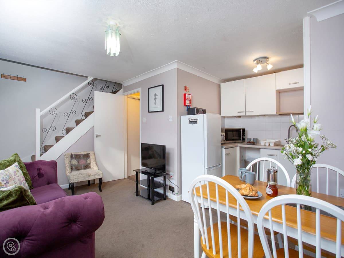 It sleeps four. Two bedrooms upstairs, one bathroom. It's got a 3 Star rating. It's clean and comfortable, not luxurious. The stairs are typical for a barn, a bit steeper than modern ones.