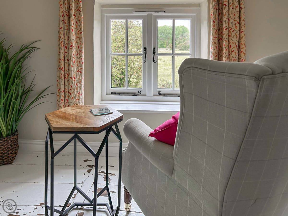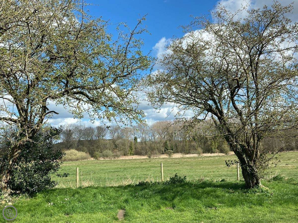 It's a rural spot. Very quiet. You can see fields. There's a play area for kids a short walk down the lane.