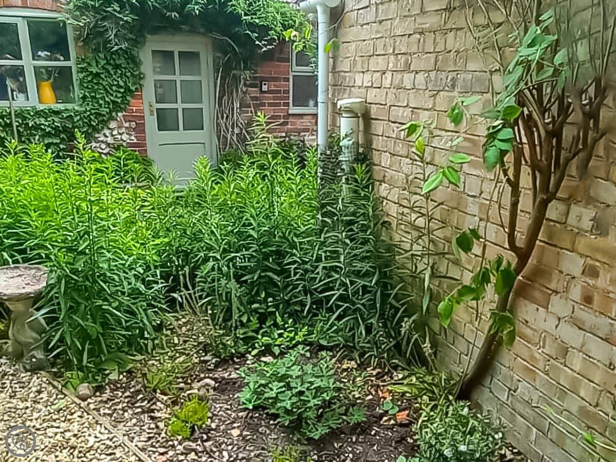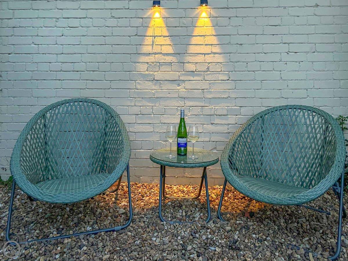You've got your own garden. It's enclosed. It's a nice spot to sit out, if the weather's up to it. There's a wood burner inside for the colder months.