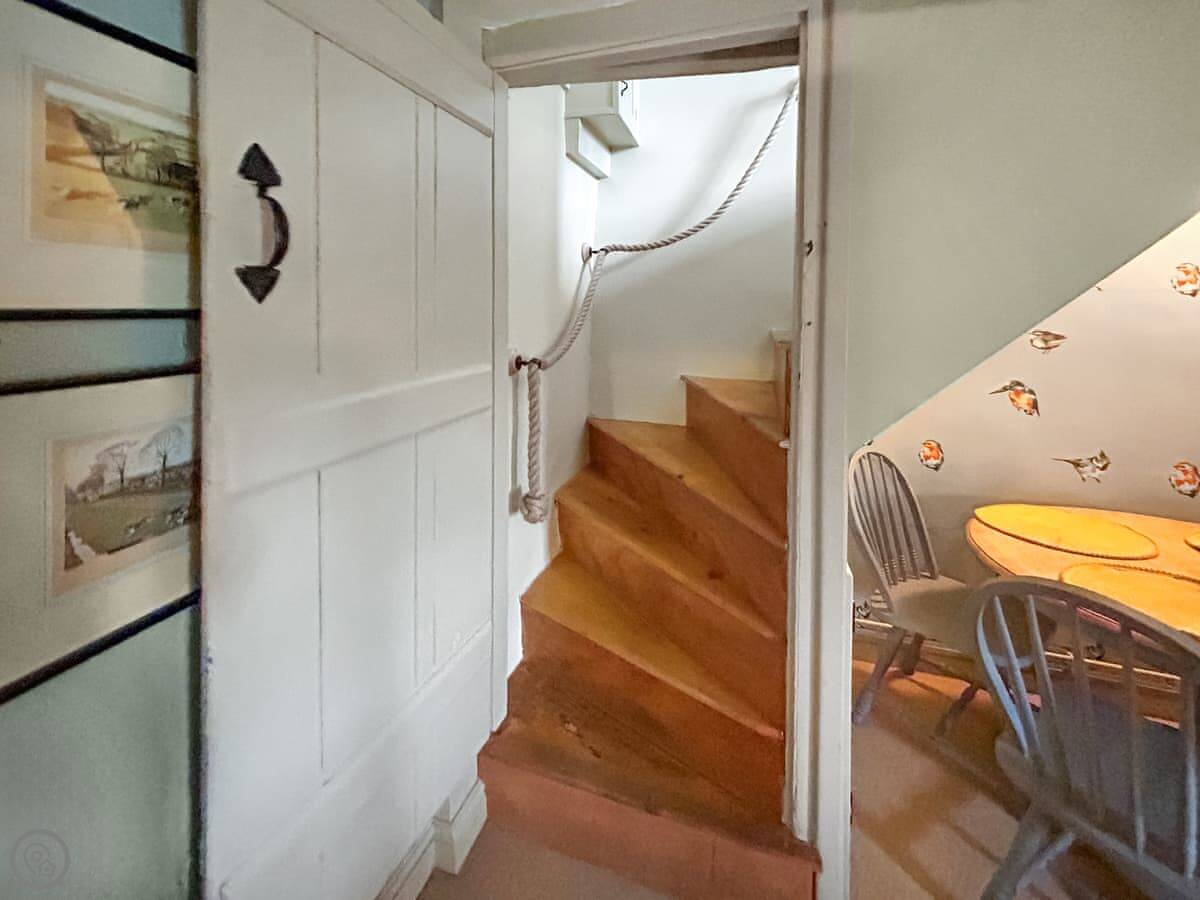 Some practical things: the stairs are steep and a bit narrow. It's a 4 Star place, which means it's comfortable and well looked after. We allow up to two dogs. There's parking.