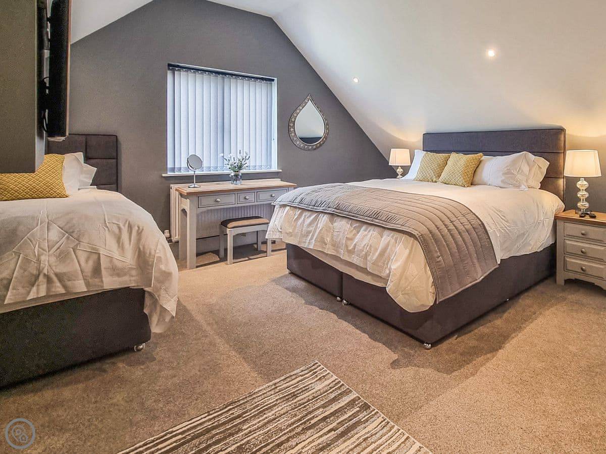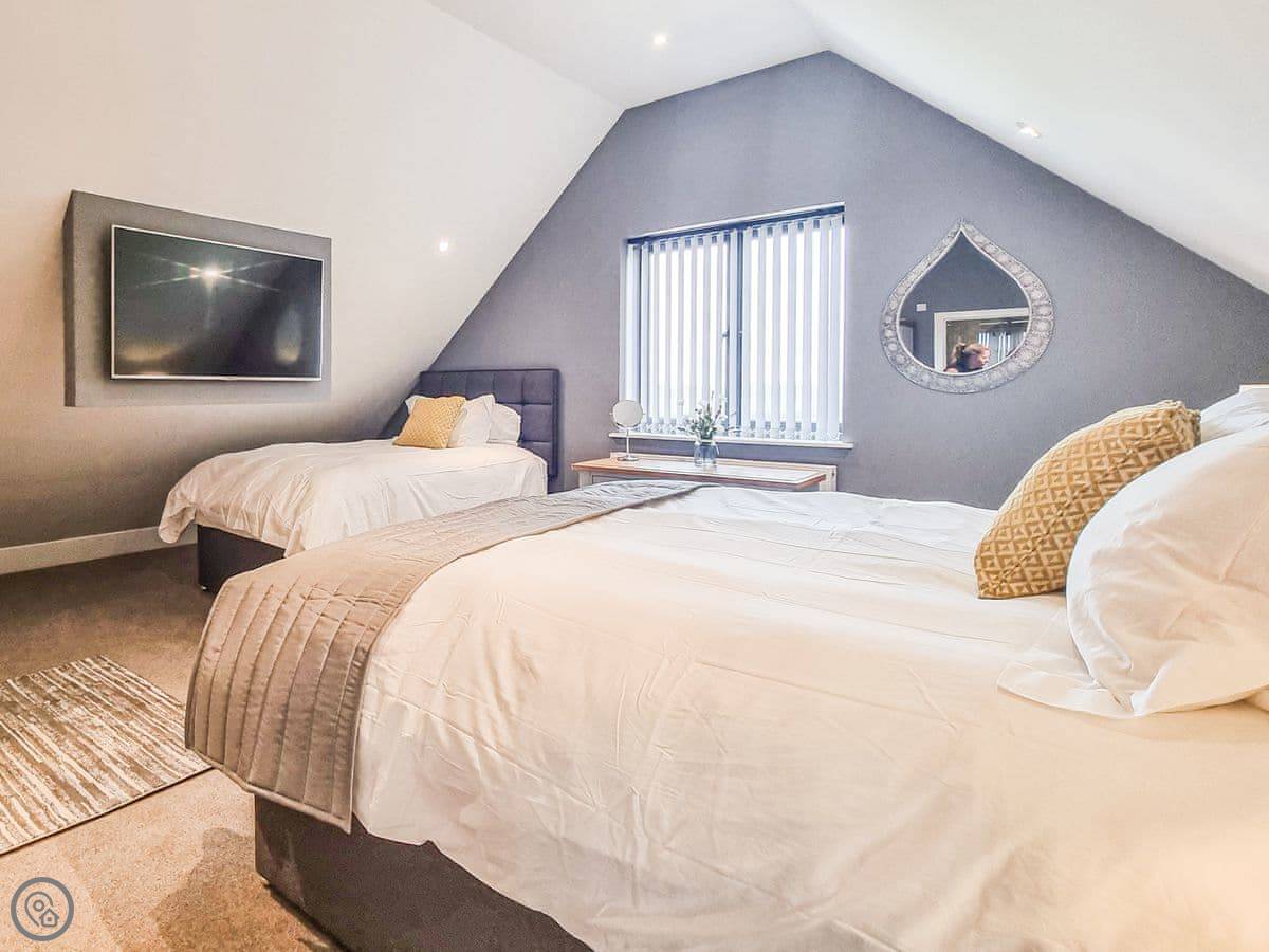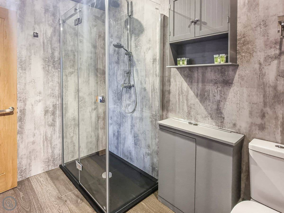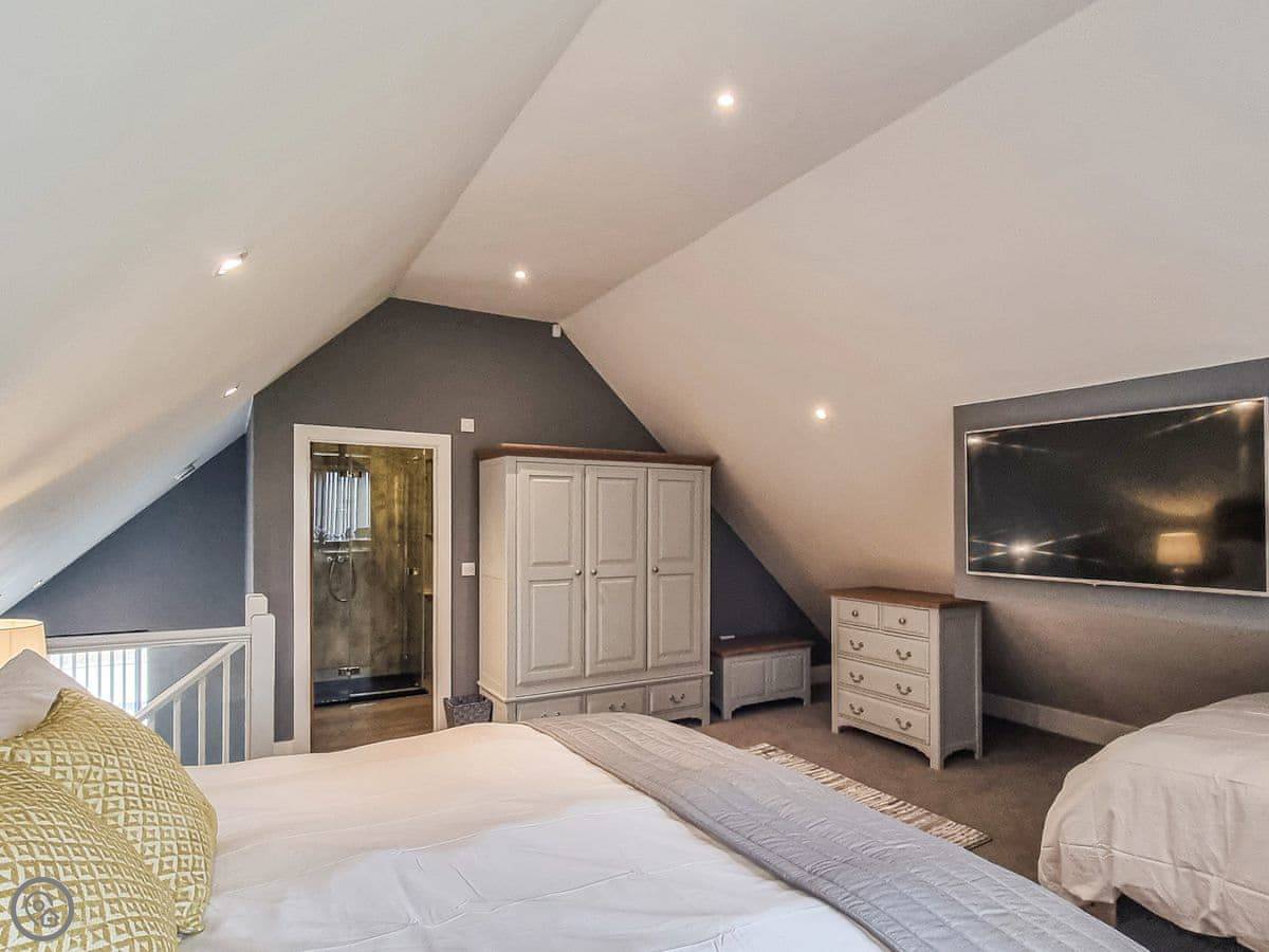 It got done up a couple of years ago. It's clean and new inside. Sleeps four, but all in one big room upstairs. There's a super king bed and another small double in there. Good mattresses. The shower room is up there too, it's en-suite.