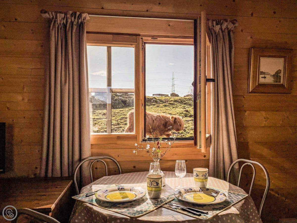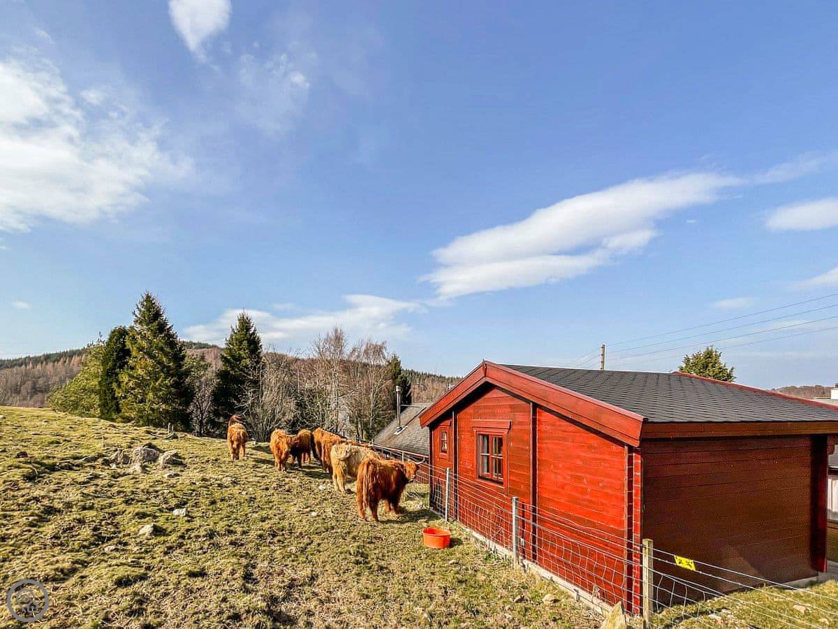 Ballyheather Cottage is a gem of a holiday home in the Highlands of Scotland. Set on a farm with an internationally-known fold of Highland Cattle, it takes its name from a celebrated stock bull called Dalriada of Ballyheather. The cottage is unique because of its unspoiled situation, where visitors are able to see these iconic animals in their rugged, natural setting and yet this typical Highland landscape is a mere twenty minutes from Inverness, the UK’s most northerly City. Staying at Ballyheather Cottage is an amazing experience. The accommodation is simple but delivered to a great standard. It is a lovely, comfortable place to stay and enjoy the relaxation and peace of Tordarroch Estate. Entering the cottage, there’s an open plan living space with dining table and a well-equipped kitchen. The views from the living room out to the moorland are mesmerising. It’s a lovely place to be able to sit, relax, read and enjoy wildlife and the changing patterns of light.