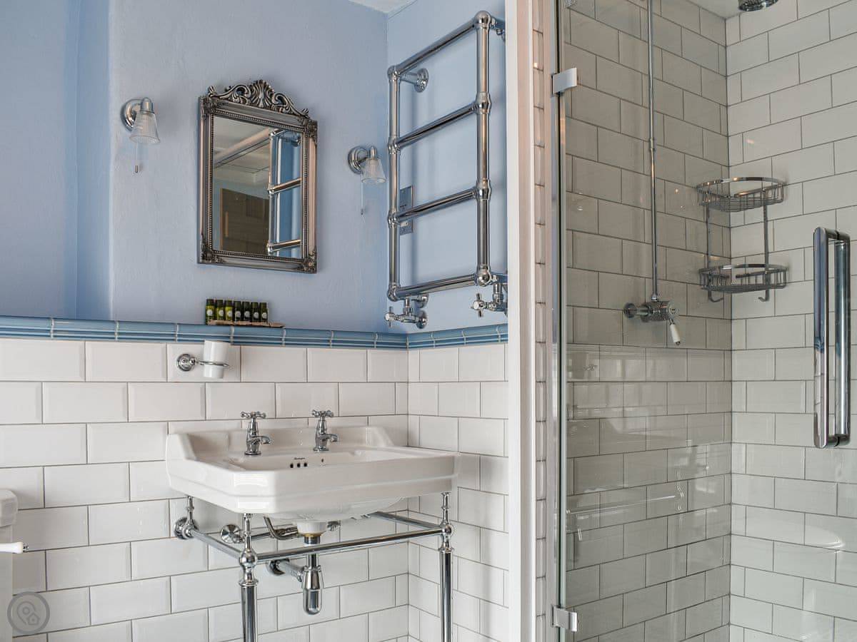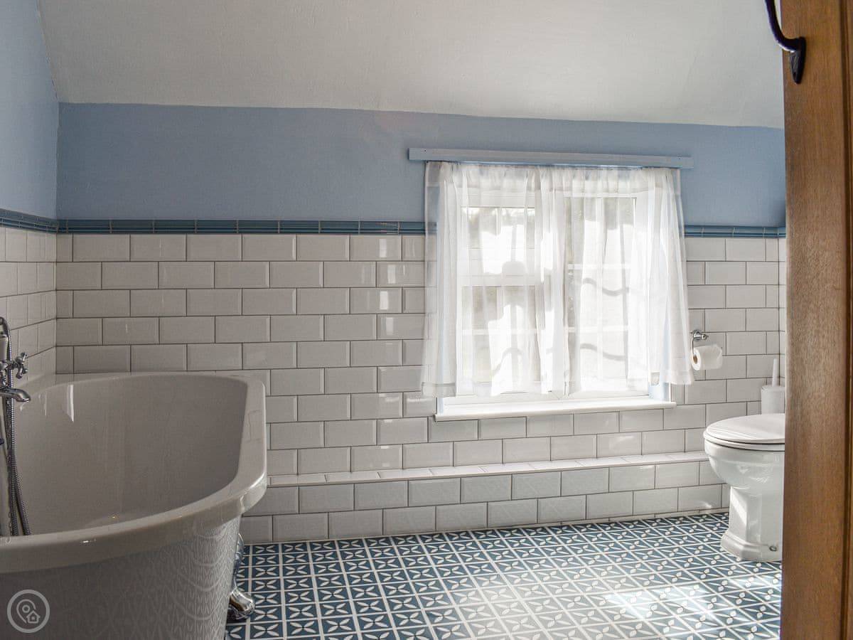 It's a two-bedroom cottage, sleeps four. There's one bathroom upstairs, which we redid a couple of years ago. It's got a bath and a separate shower cubicle.