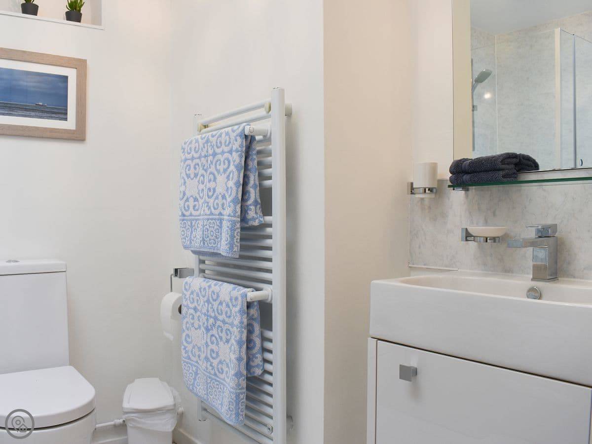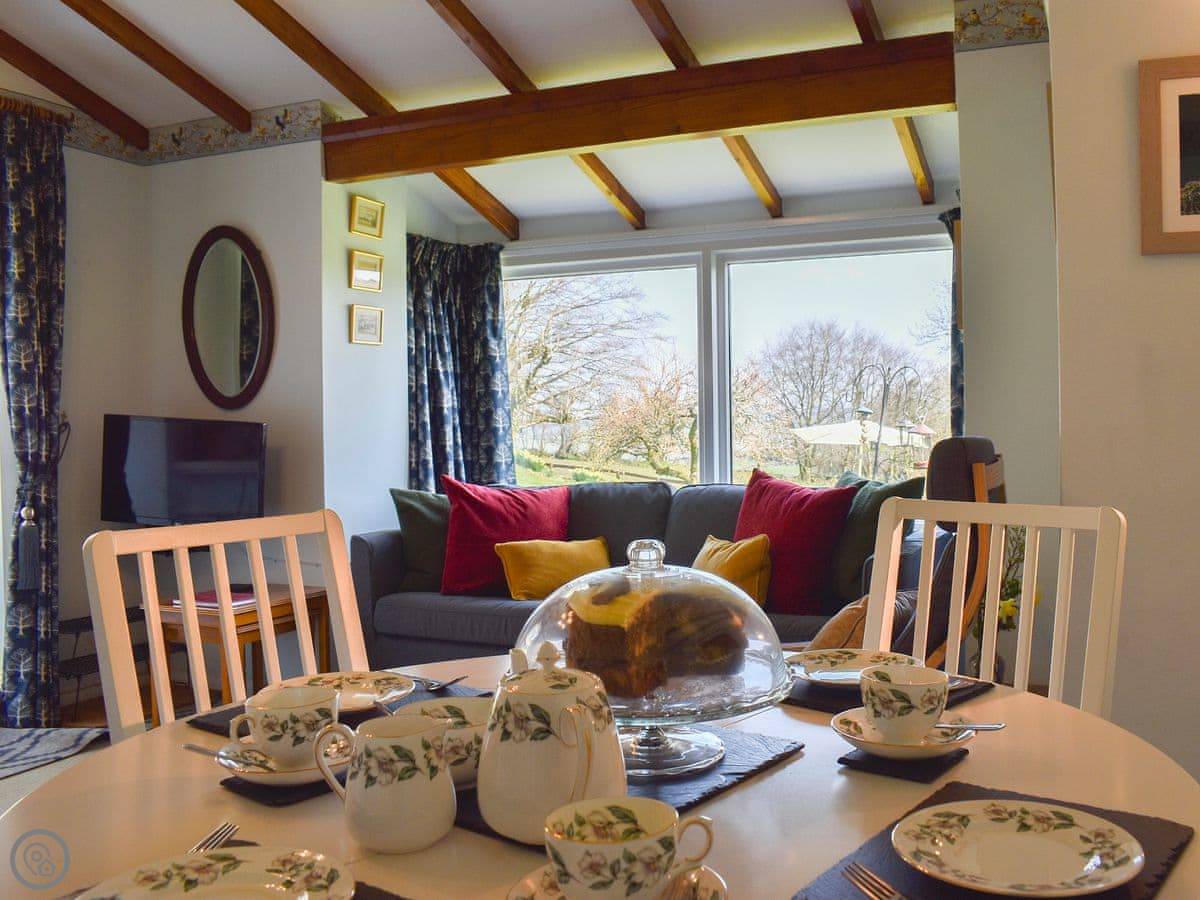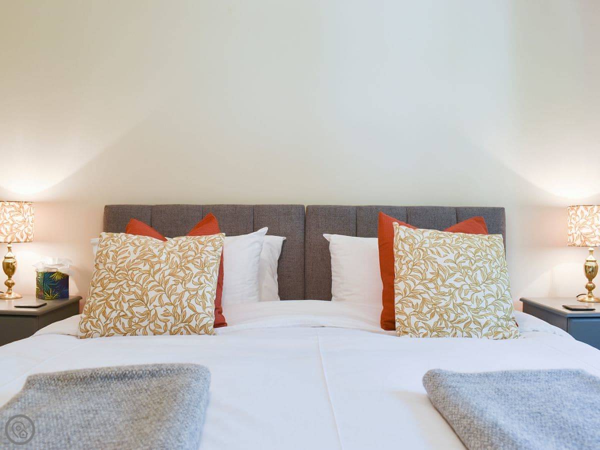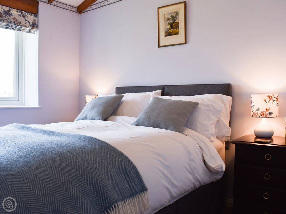 The layout is a bit different. There's an open plan living area downstairs. The main bedroom is upstairs, but there's also a double bedroom on the ground floor. There are four steps up from the living area to the bathroom and upstairs bedroom.