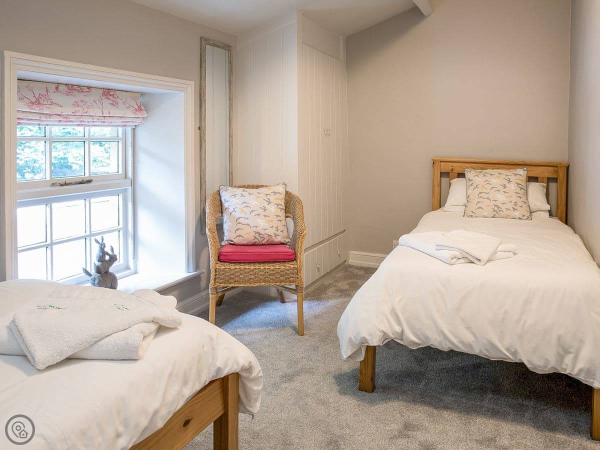 The living room boasts a wood burner and the kitchen/dining room is well equipped. On the ground floor is a kingsize bedroom with a vaulted ceiling as well as a family bathroom. With beamed ceilings and exposed stone walls, this cottage has an authentic, characterful feel throughout. Upstairs, the second kingsize bedroom has a en-suite shower room, and there is also a twin bedroom. Stephenson Cottage is a great size for families as well as couples.
