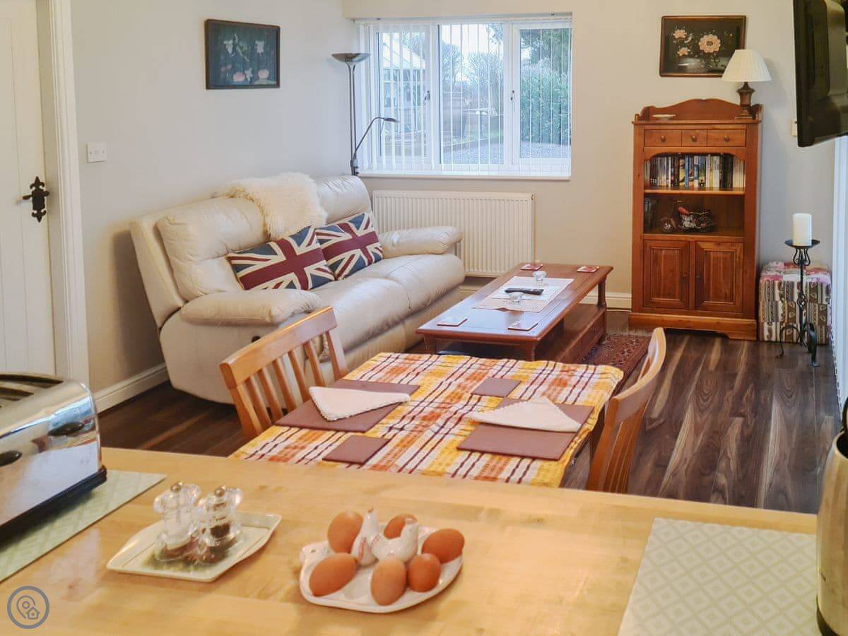 The Annexe is positioned in the low hills close to the Snowdonia National Park and enjoys a spectacular sea view from the front aspect of the property. This all on one level annexe with its own private entrance offers a comfortable and well-equipped accommodation. The living and dining area is open living style and provides a kitchenette with breakfast bar, oven, small hob and microwave. There is a sofa and small dining table for two with direct access to the outside through patio door where you will find outdoor dining set for enjoying your morning coffee. The double bedroom has quality mattress and linen, ensuring a quality night sleep.