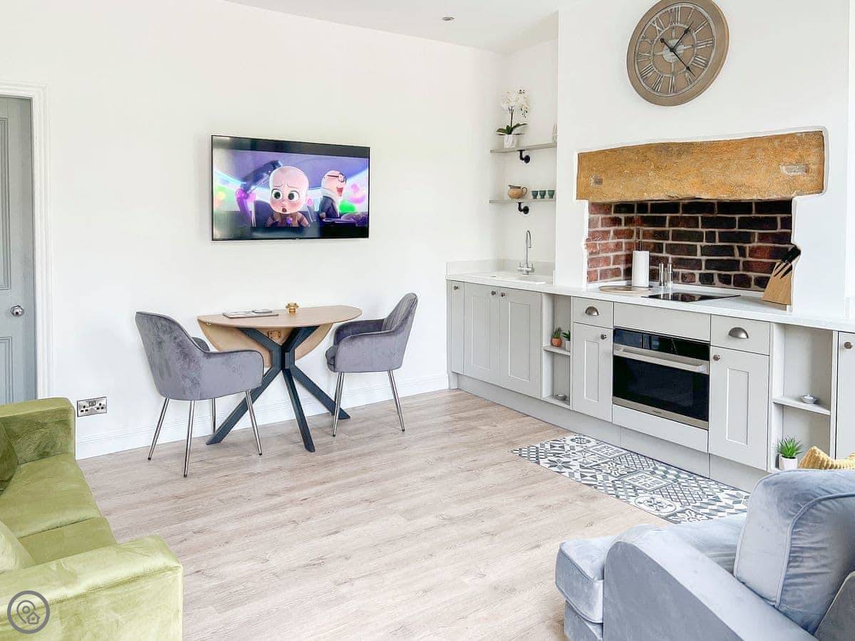 Redmonds Retreat is a mid-terraced cottage located within the village of Chinley. The village has two fantastic pubs serving home cooked meals and there are also direct train lines into Sheffield or Manchester. Walkers and cyclists can enjoy an abundance of walking and cycling routes to explore. The cottage itself has beed finished to a very good standard and is the perfect place for a couple or two friends. There is a lovely garden area at the front with table and chairs from where you can see the river. On entering the cottage, you are greeted by the open plan living area, which the owners have cleverly designed to feel spacious. There is a well-equipped kitchen, a great size TV with access to Sky, and comfy seating that can be made into a sofa-bed if required. On the first floor is the kingsize bedroom with its en-suite shower room. Redmonds Retreat is quaint and highly desirable for walkers or people just looking for an easy countryside escape.