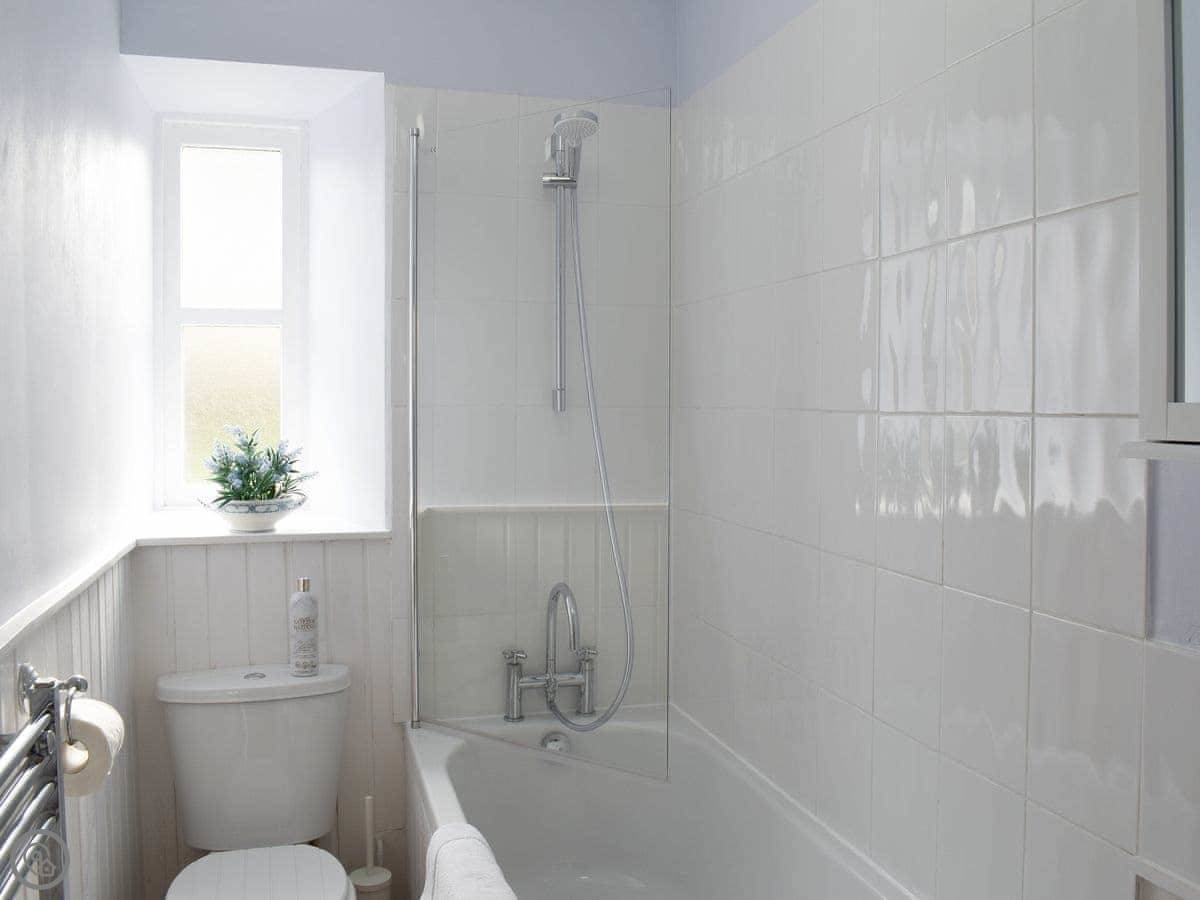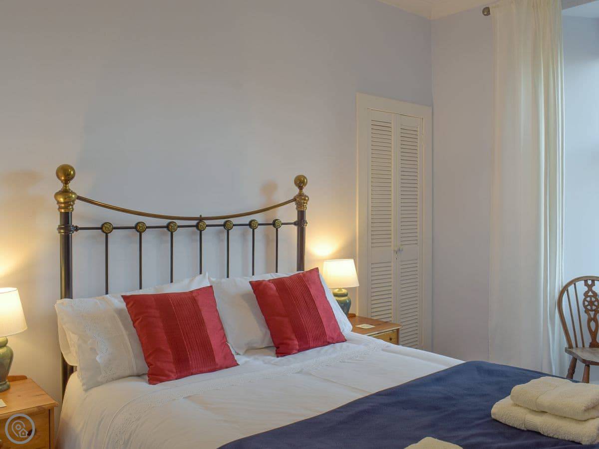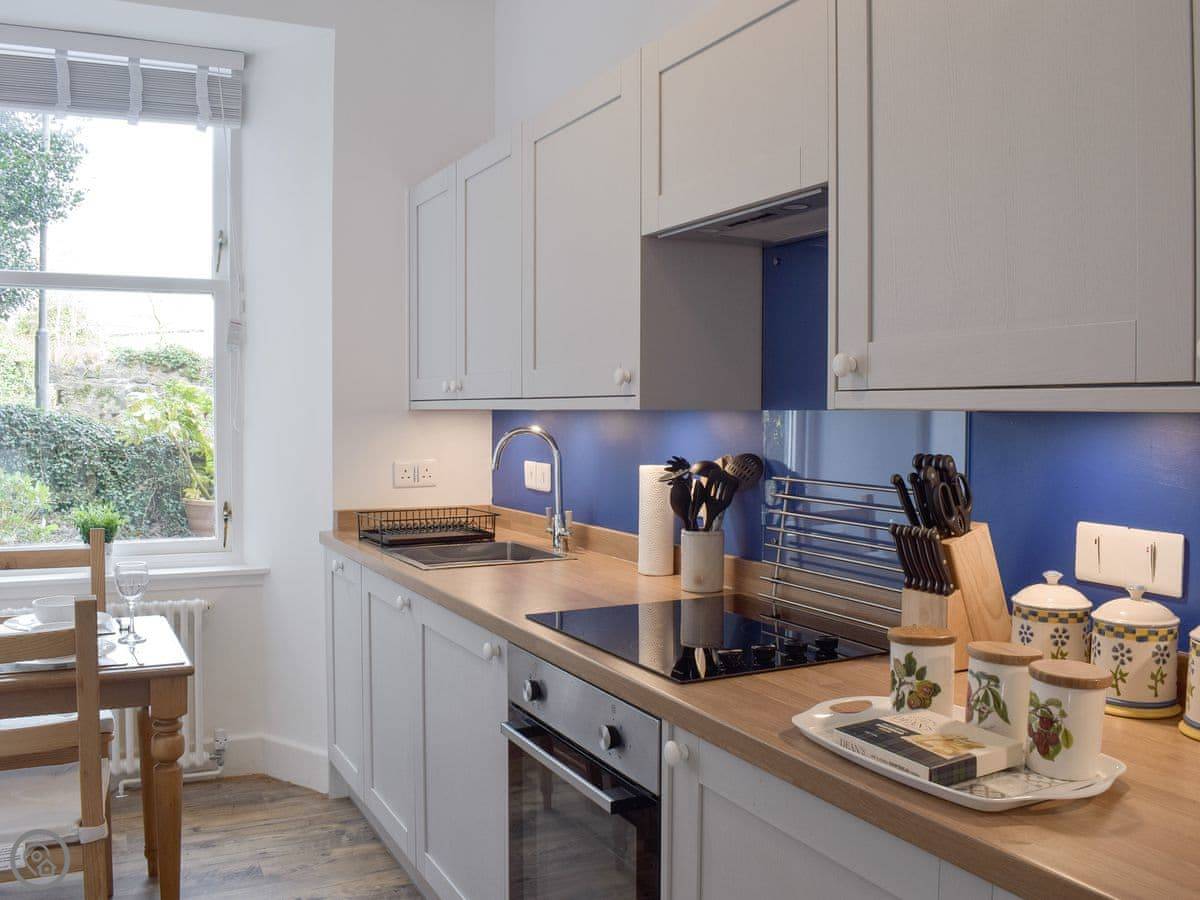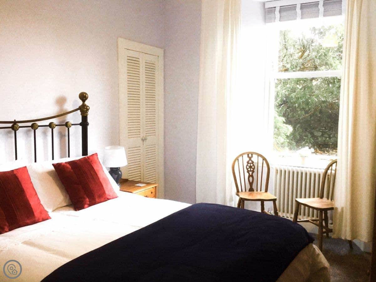 The welcoming spacious hallway includes coat hooks and plenty of space for shoes. The bright sunny living room, furnished in a style sympathetic to the era of the property, overlooks the well-kept communal rear garden. This room includes Wi-Fi, Smart TV with built-in DVD player, Radio/CD player, gas fire and sofa bed. The double bedroom, furnished in a fresh cottage style, offers a glimpse of the sea and a leafy outlook across the front garden. This room includes a double bed, with kingsize duvet, iron and ironing board and hairdryer. The well-equipped kitchen also overlooks the front garden and offers a glimpse of the sea. It includes electric Kettle, toaster, oven and hob, microwave, fridge/freezer, dishwasher, washing machine and a dining table with two chairs. The bathroom with white bathroom suite comprises shower over bath, toilet, washbasin and heated towel rail. The shared rear garden is a suntrap with lawned area, mature trees and bushes, drying green, table and chairs, and lockable bicycle storage shed.