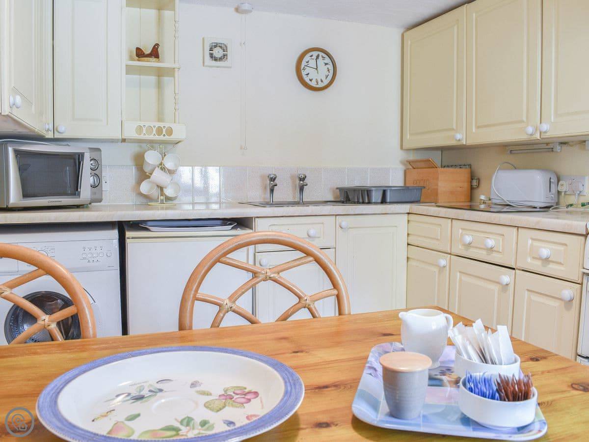 Downstairs is a sitting room with a TV and one of those electric woodburner stoves for background heat. The kitchen has a table to eat at. It's a 3 Star place, so it's comfortable and clean without being luxurious.